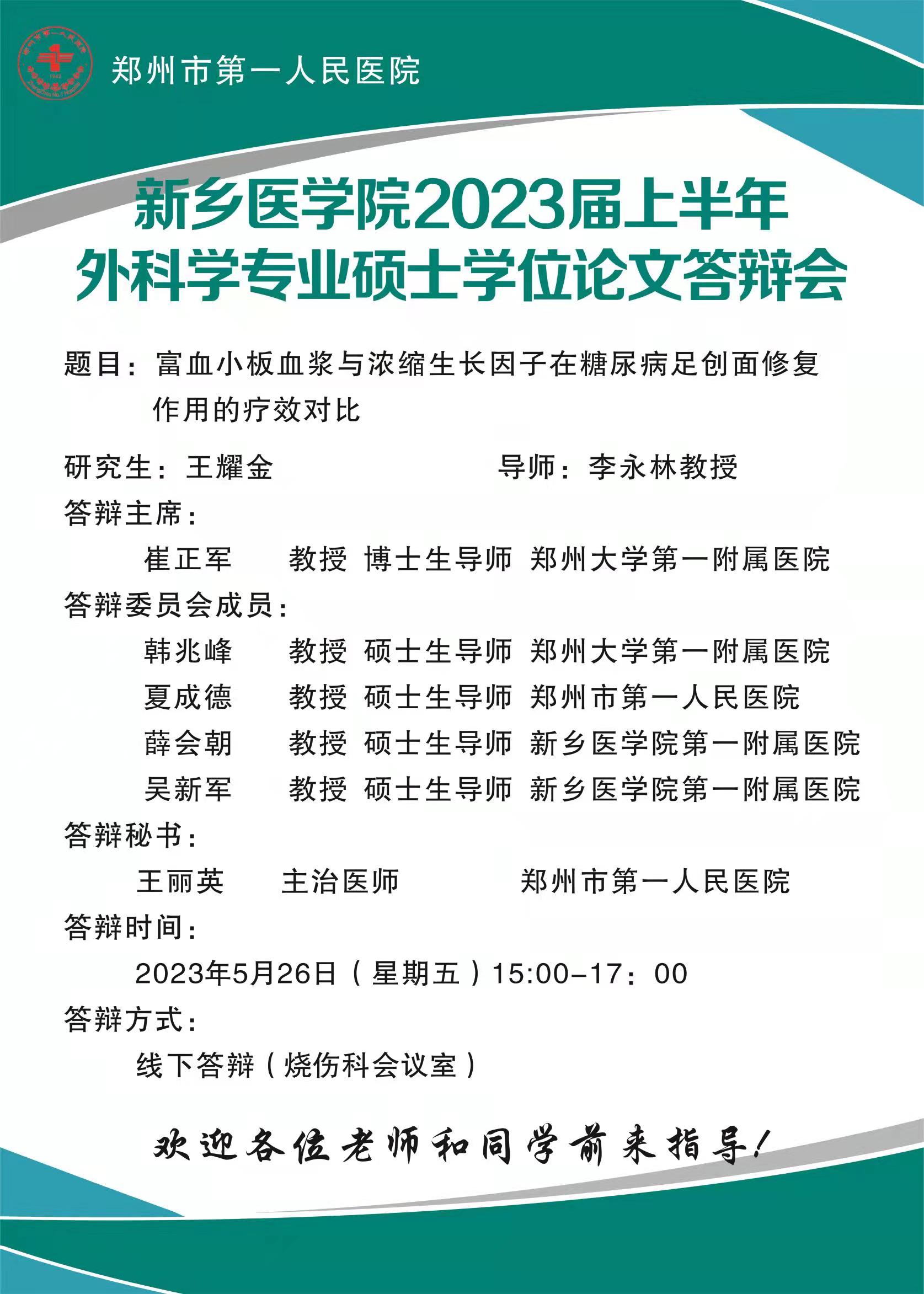 2023上半年华亿在线手机版(大中国区)(郑州市第一人民医院)外科学硕士学位论文答辩会