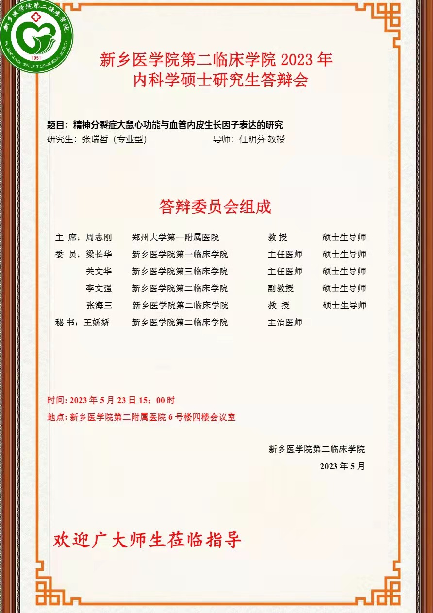 2023上半年华亿在线手机版(大中国区)第二临床学院内科学学硕士学位论文答辩会