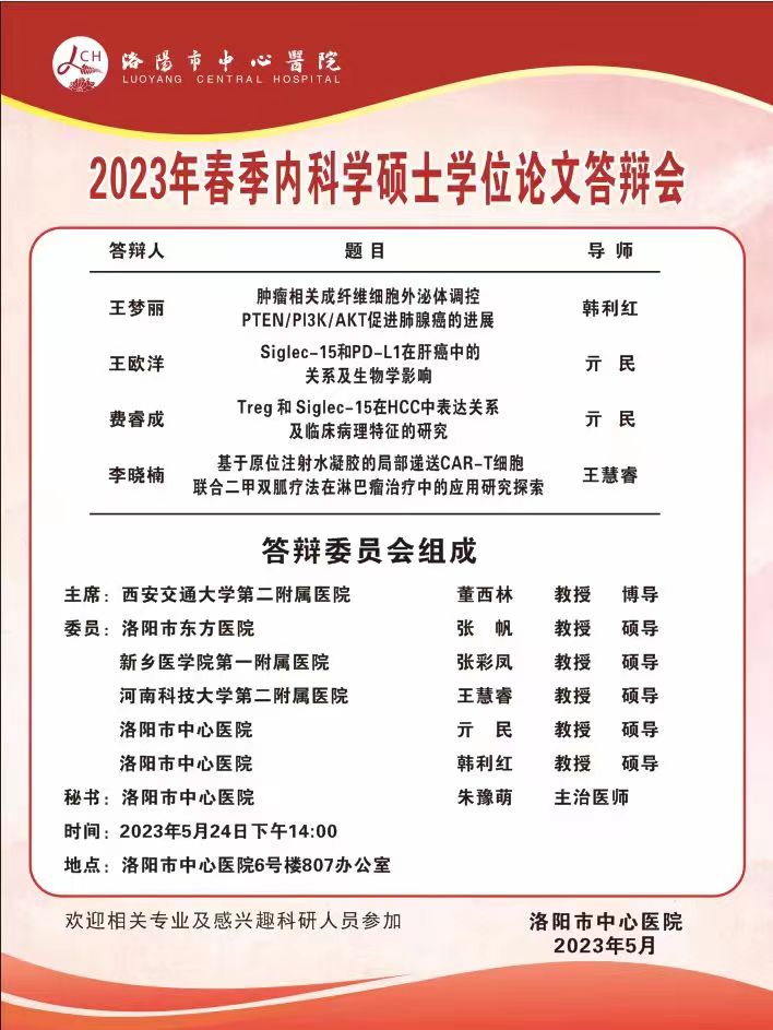 2023上半年华亿在线手机版(大中国区)洛阳市中心医院内科学硕士学位论文答辩会
