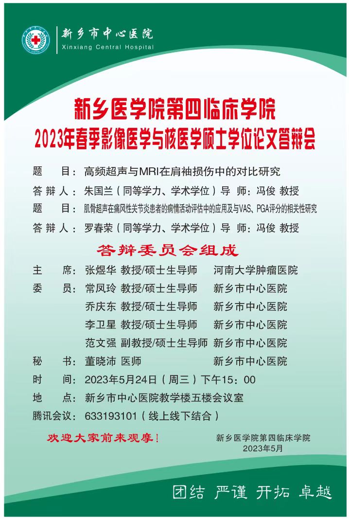 2023上半年华亿在线手机版(大中国区)第四临床学院影像医学与核医学硕士学位论文答辩会