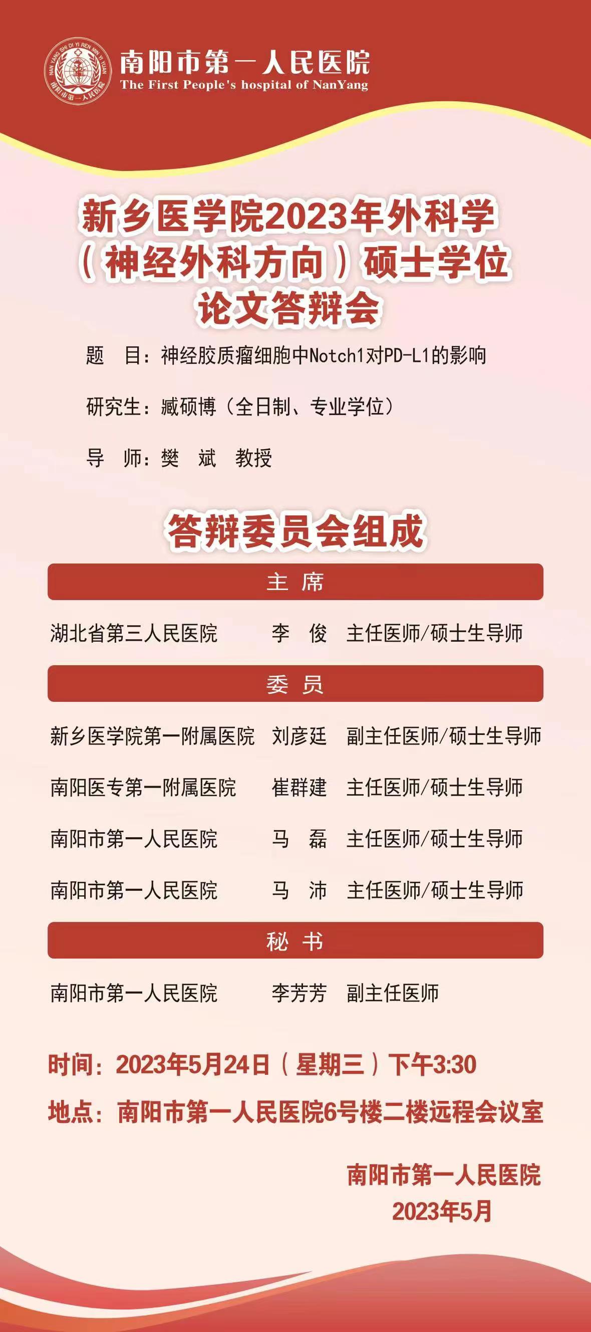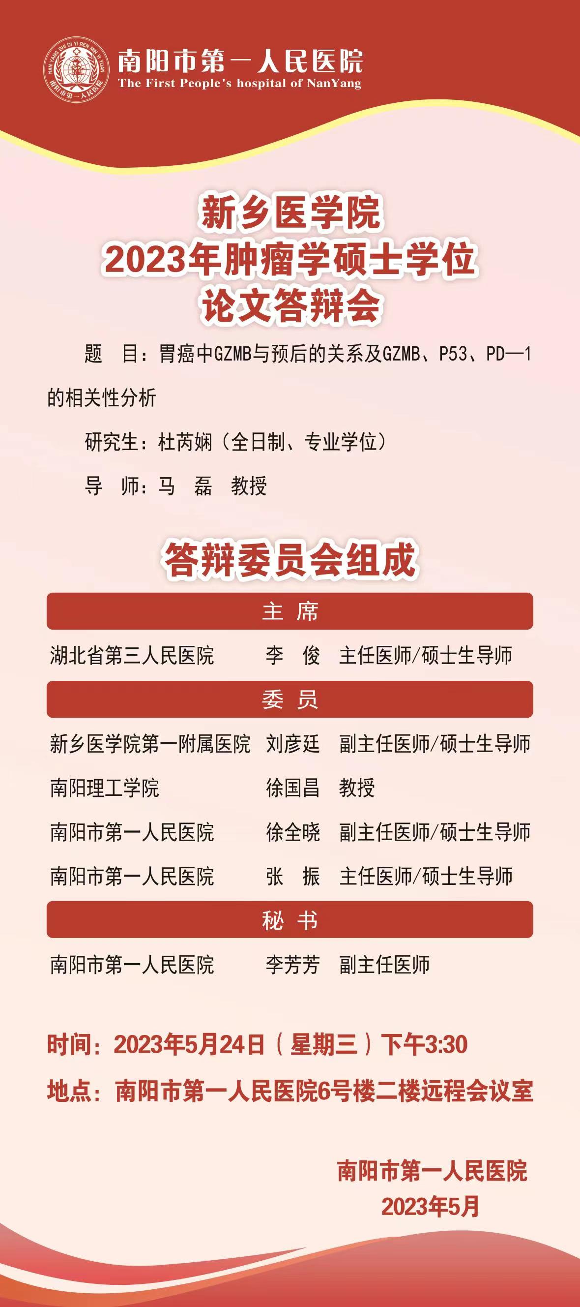 2023上半年华亿在线手机版(大中国区)南阳市第一人民医院肿瘤学及外科学硕士学位论文答辩会