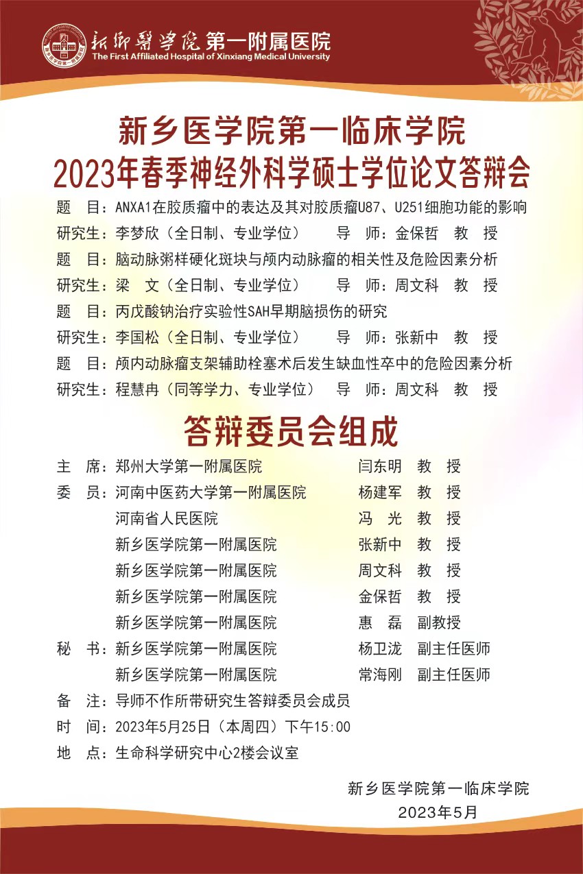 2023上半年华亿在线手机版(大中国区)南阳市第一人民医院肿瘤学及外科学硕士学位论文答辩会