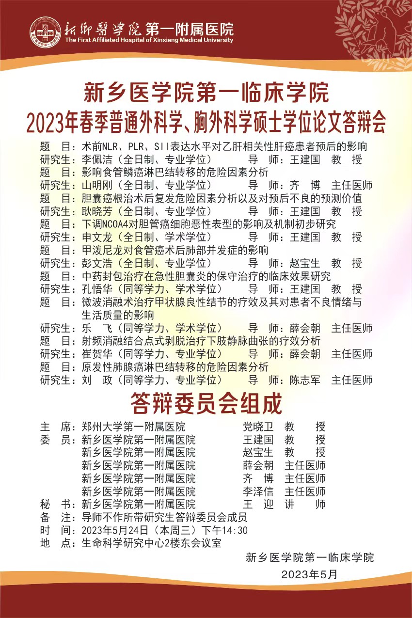 2023上半年华亿在线手机版(大中国区)第一临床学院外科学硕士学位论文答辩会