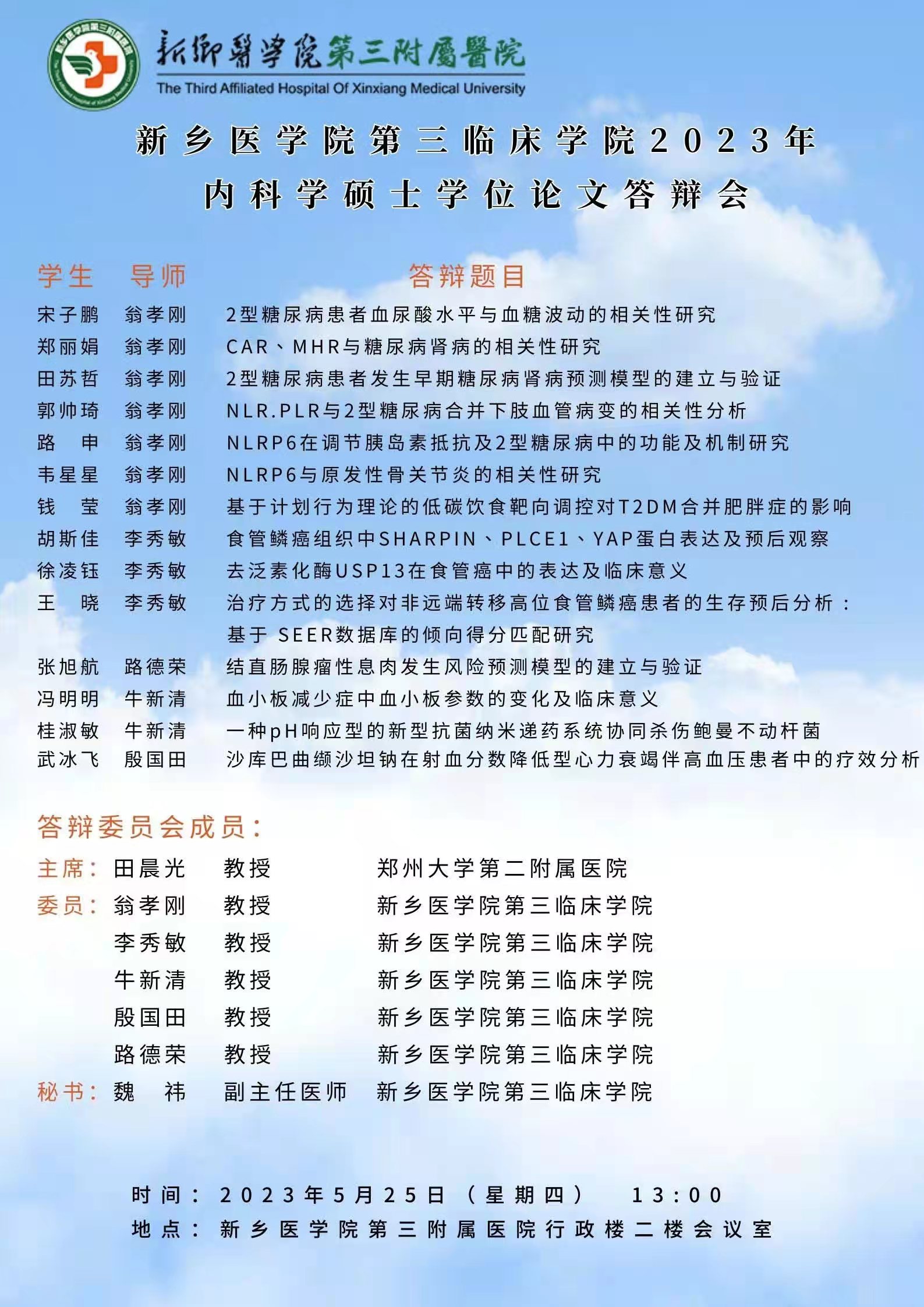 2023上半年华亿在线手机版(大中国区)第三临床学院内科学硕士学位论文答辩会