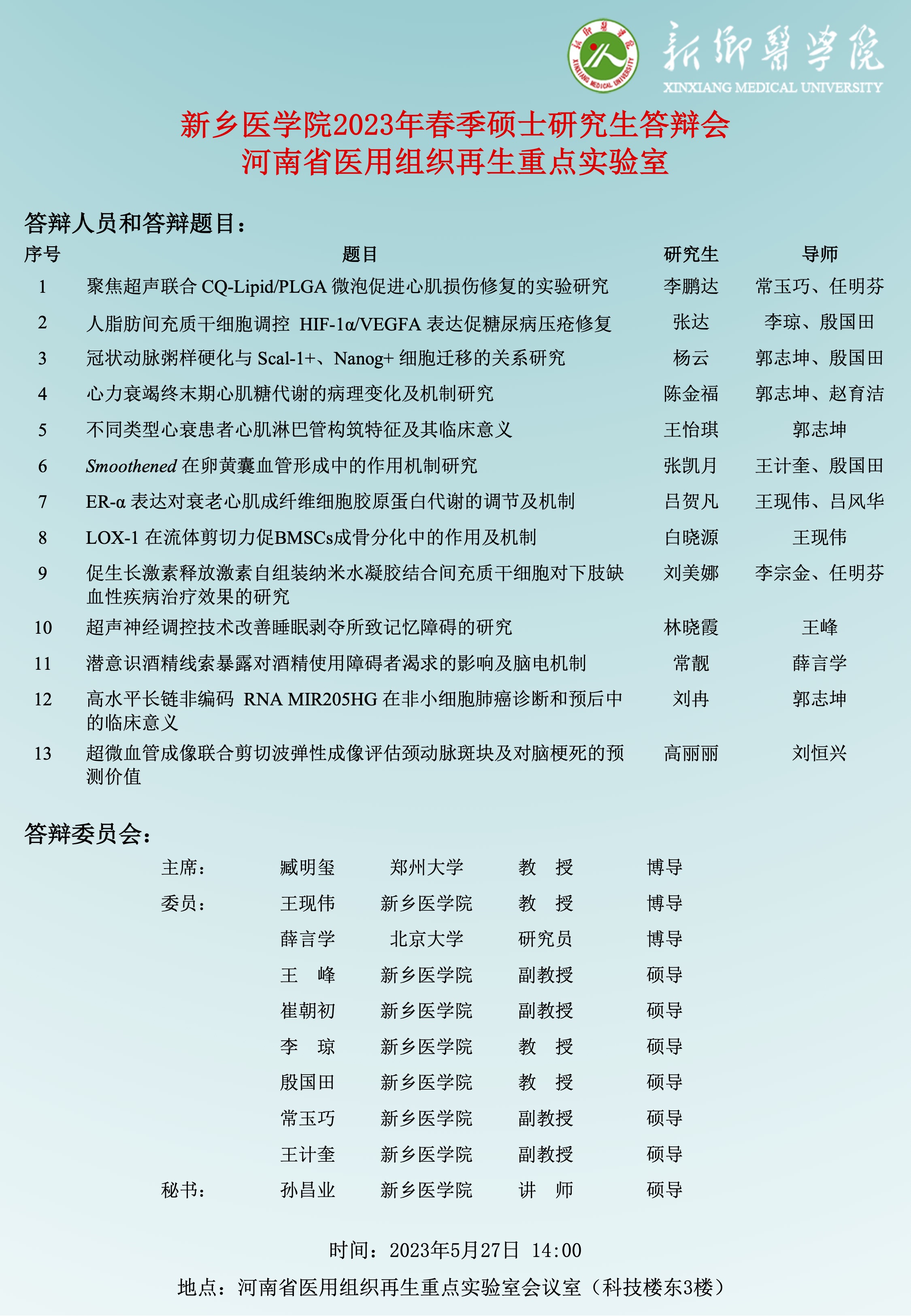 2023上半年华亿在线手机版(大中国区)河南省医用组织再生重点实验室硕士学位论文答辩会