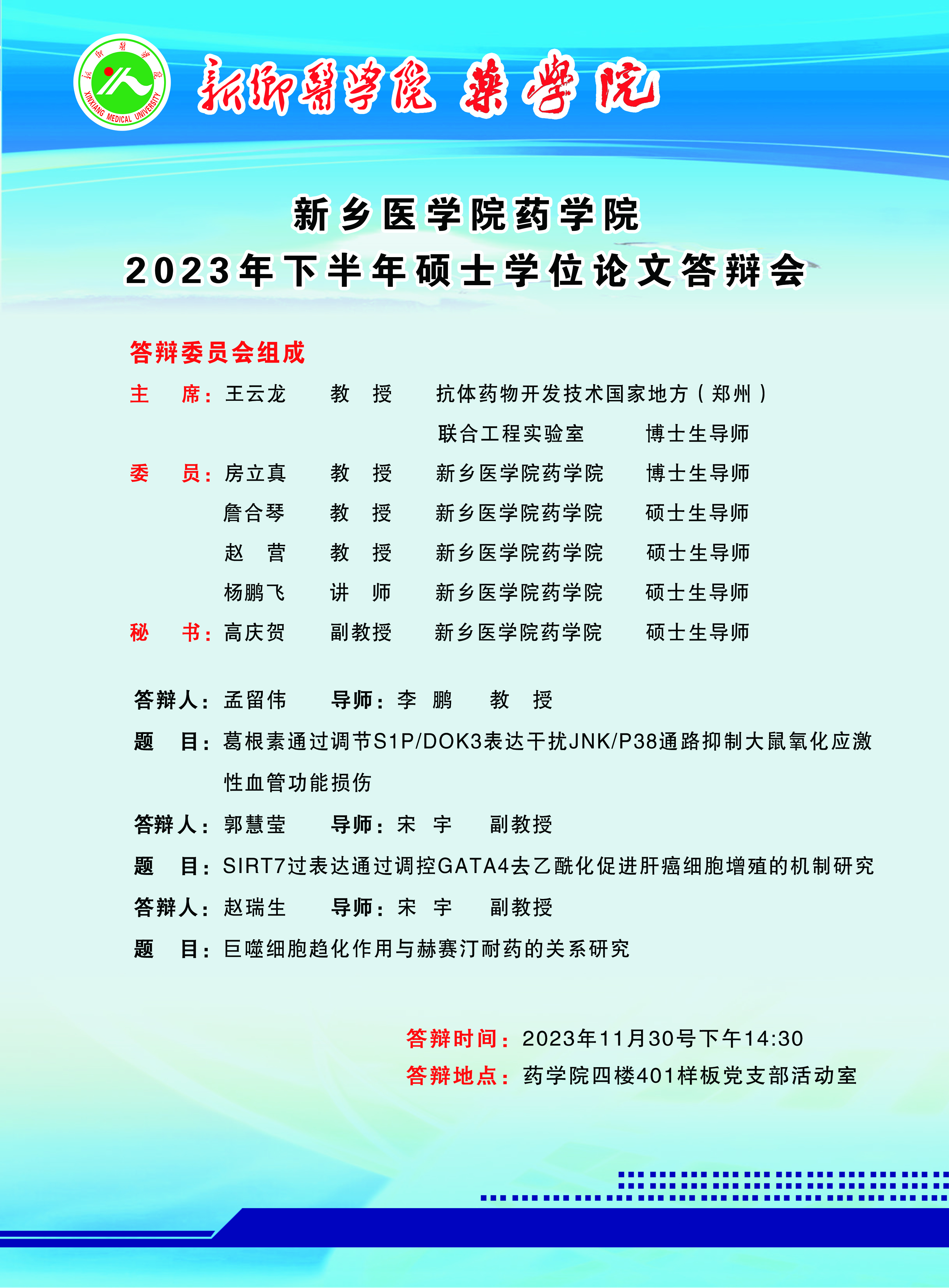 2023下半年洛阳市中心医院硕士学位论文答辩海报
