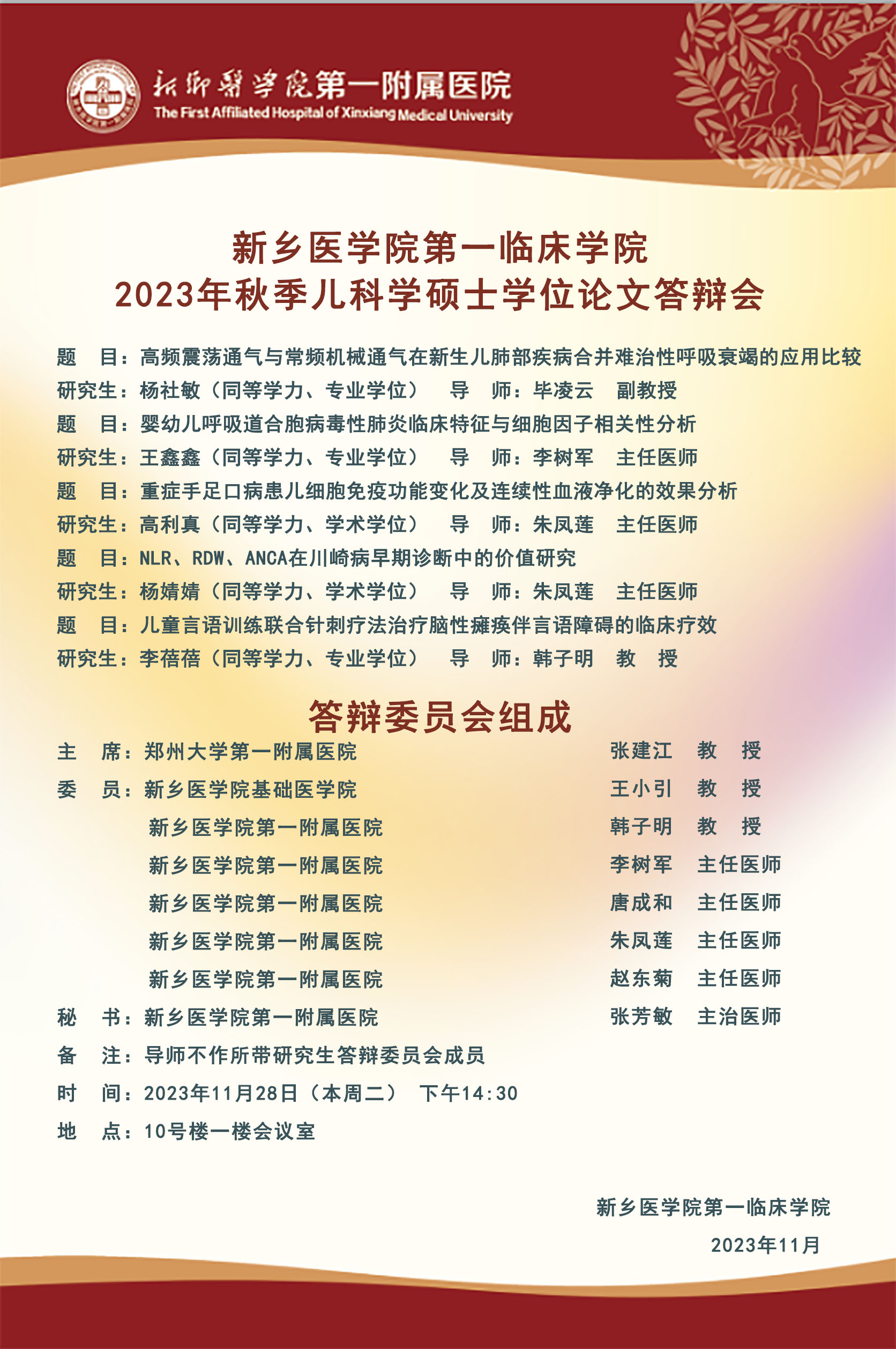 2023下半年第一临床学院儿科学硕士学位论文答辩会