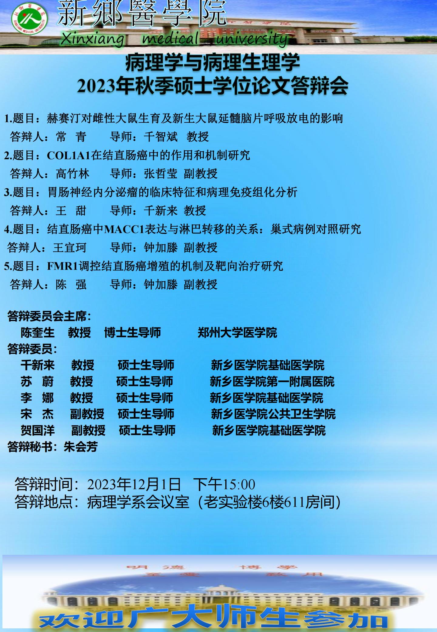 2023下半年基础医学院病理学与病理生理学硕士学位论文答辩会
