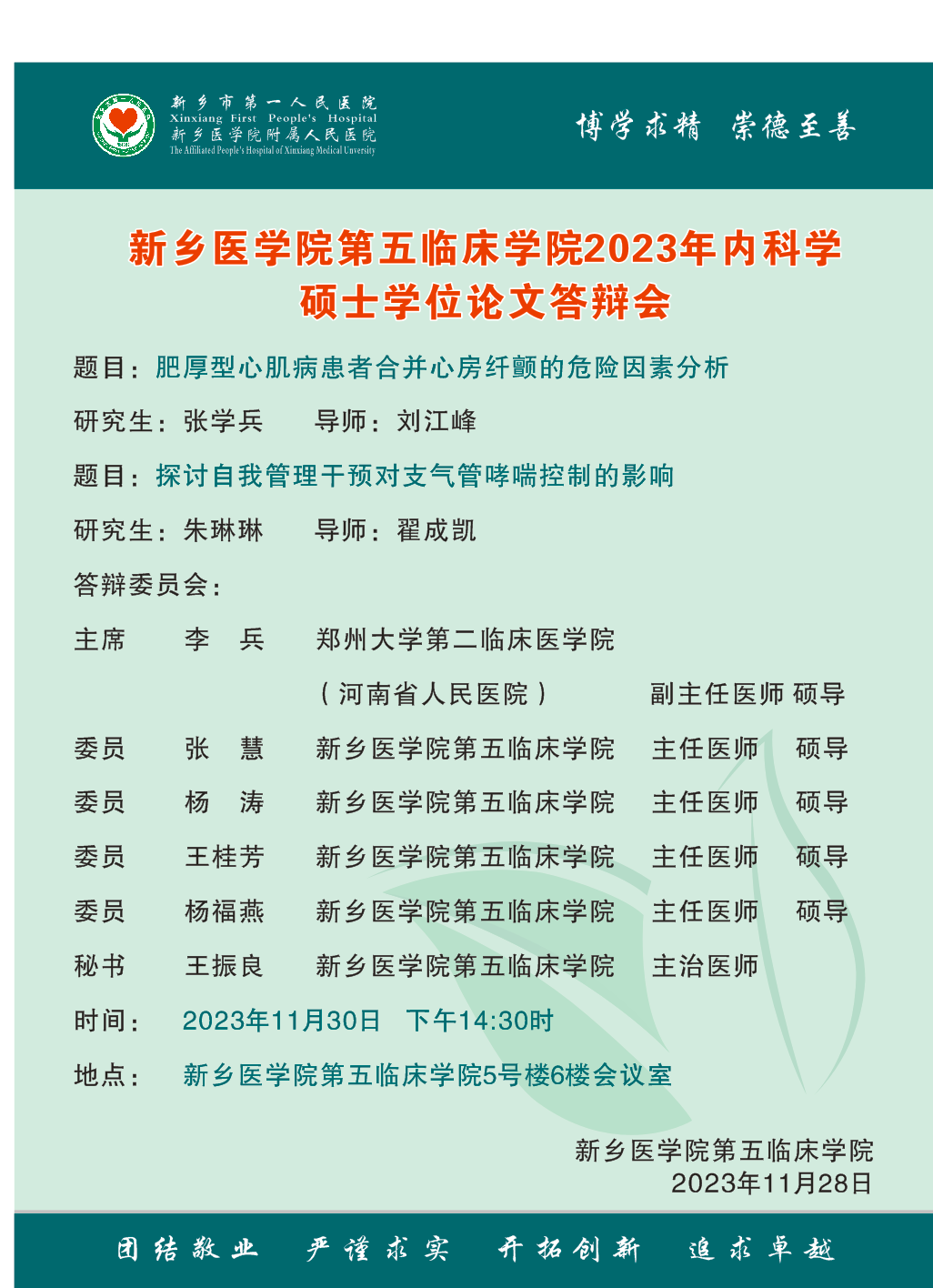 2023下半年第五临床学院内科学硕士学位论文答辩会