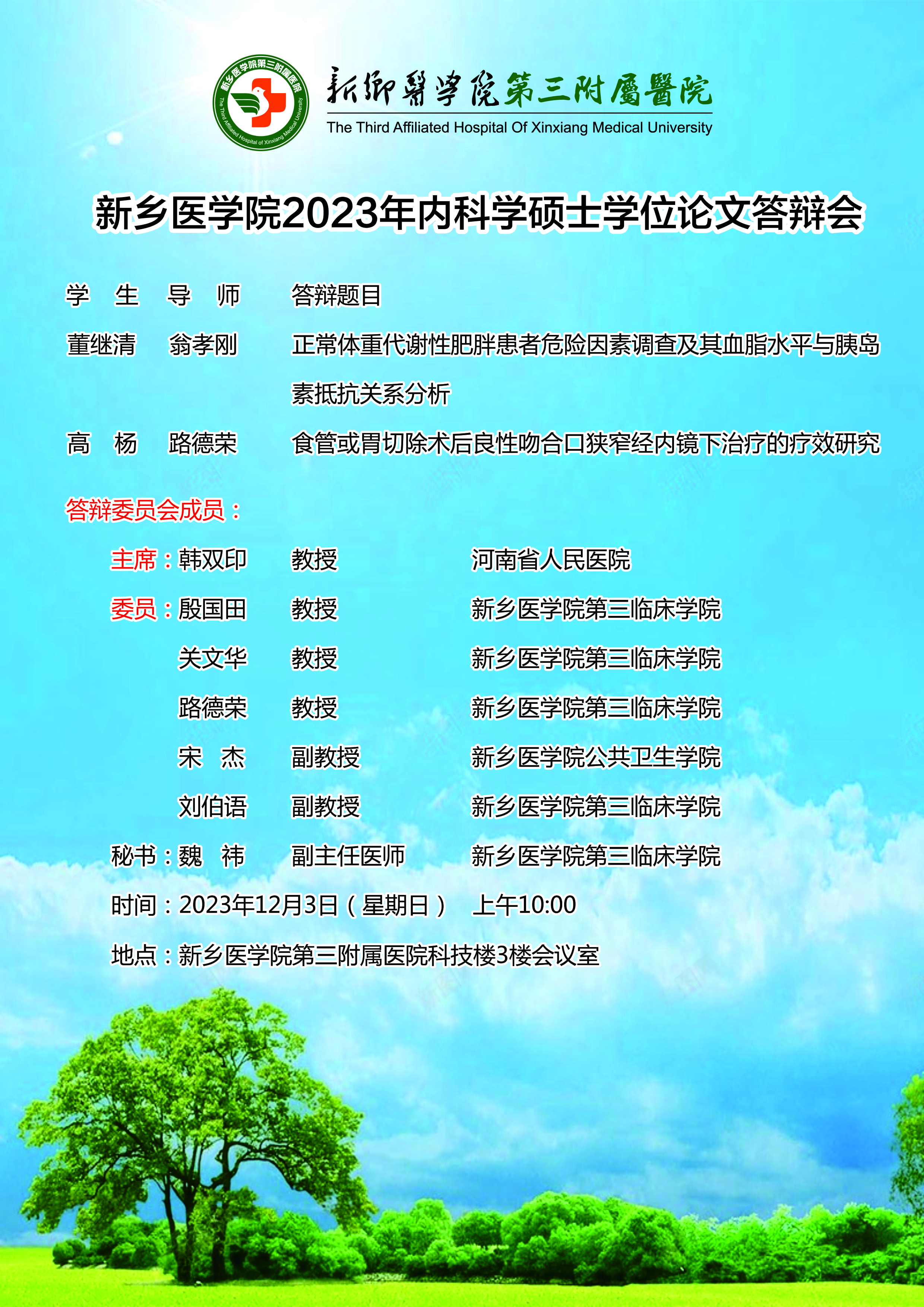 2023下半年第三临床学院内科学硕士学位论文答辩会