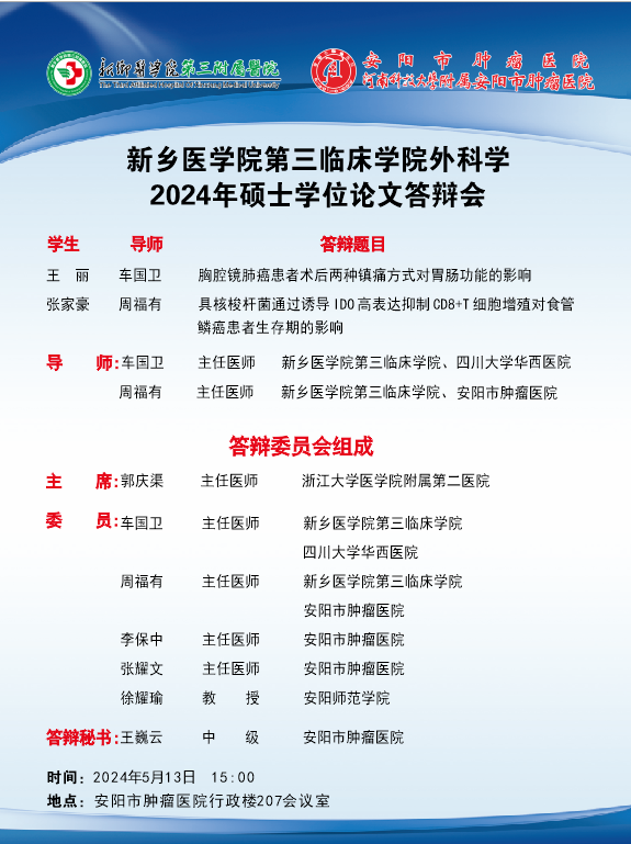 2024年春季华亿在线手机版(大中国区)第三临床学院外科学硕士学位论文答辩会