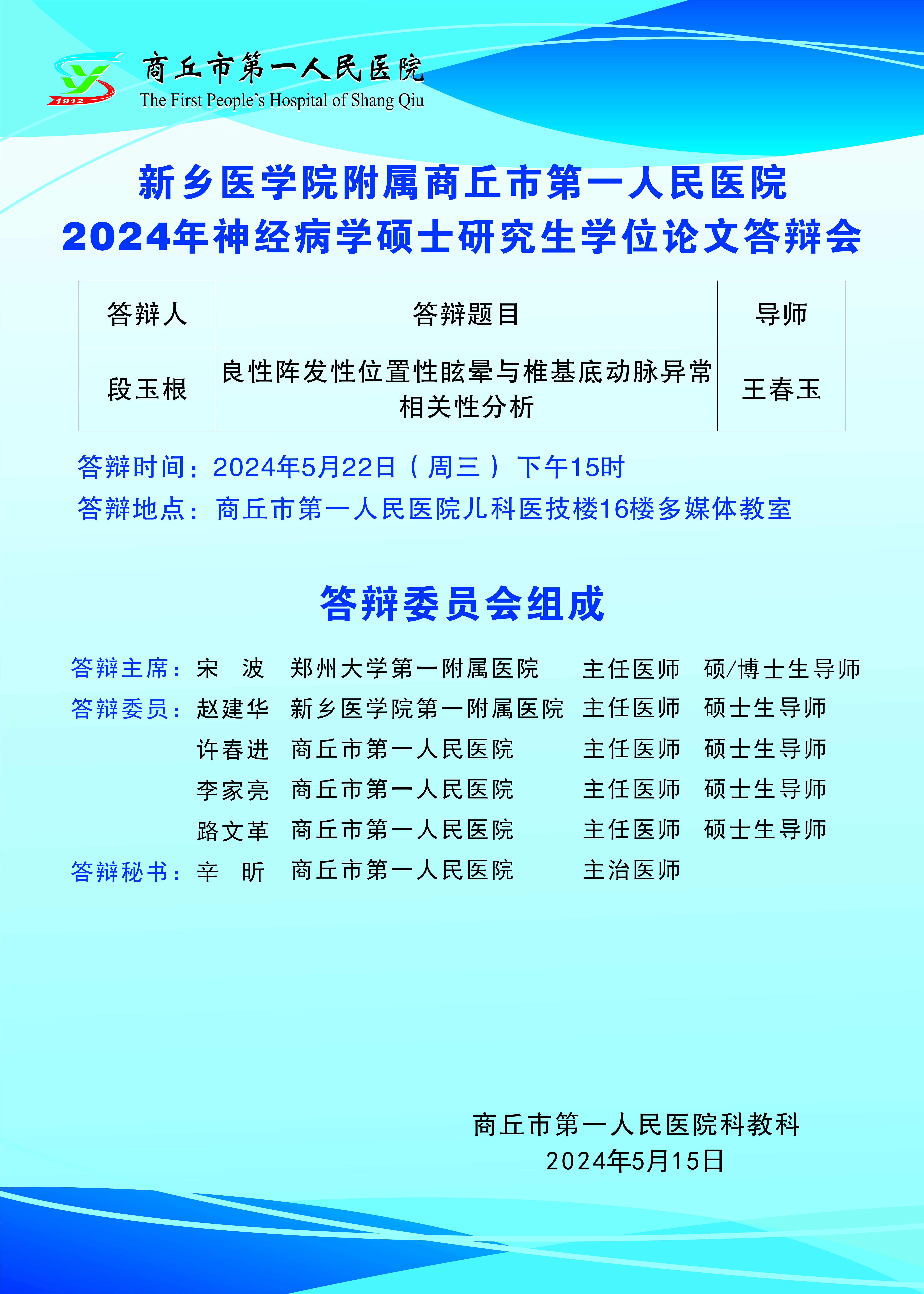 2024年春季华亿在线手机版(大中国区)商丘市第一人民医院硕士学位论文答辩会