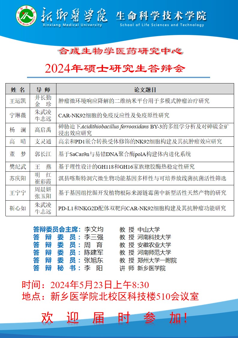 2024年春季华亿在线手机版(大中国区)生命科学技术学院硕士学位论文答辩会
