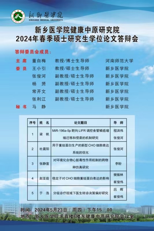 2024年春季华亿在线手机版(大中国区)郑州市中心医院硕士学位论文答辩会
