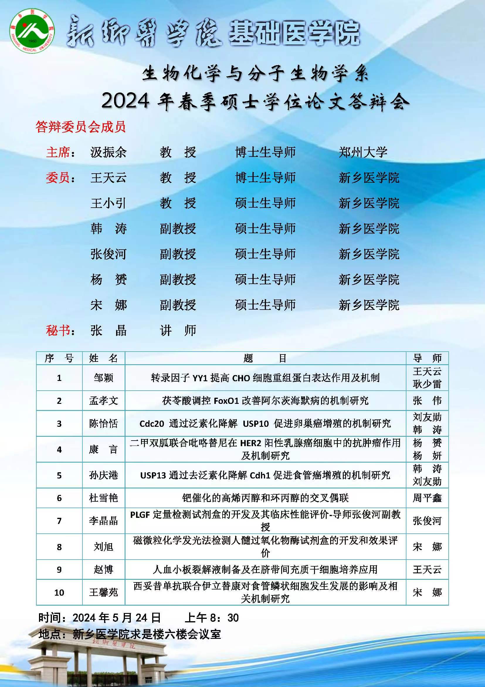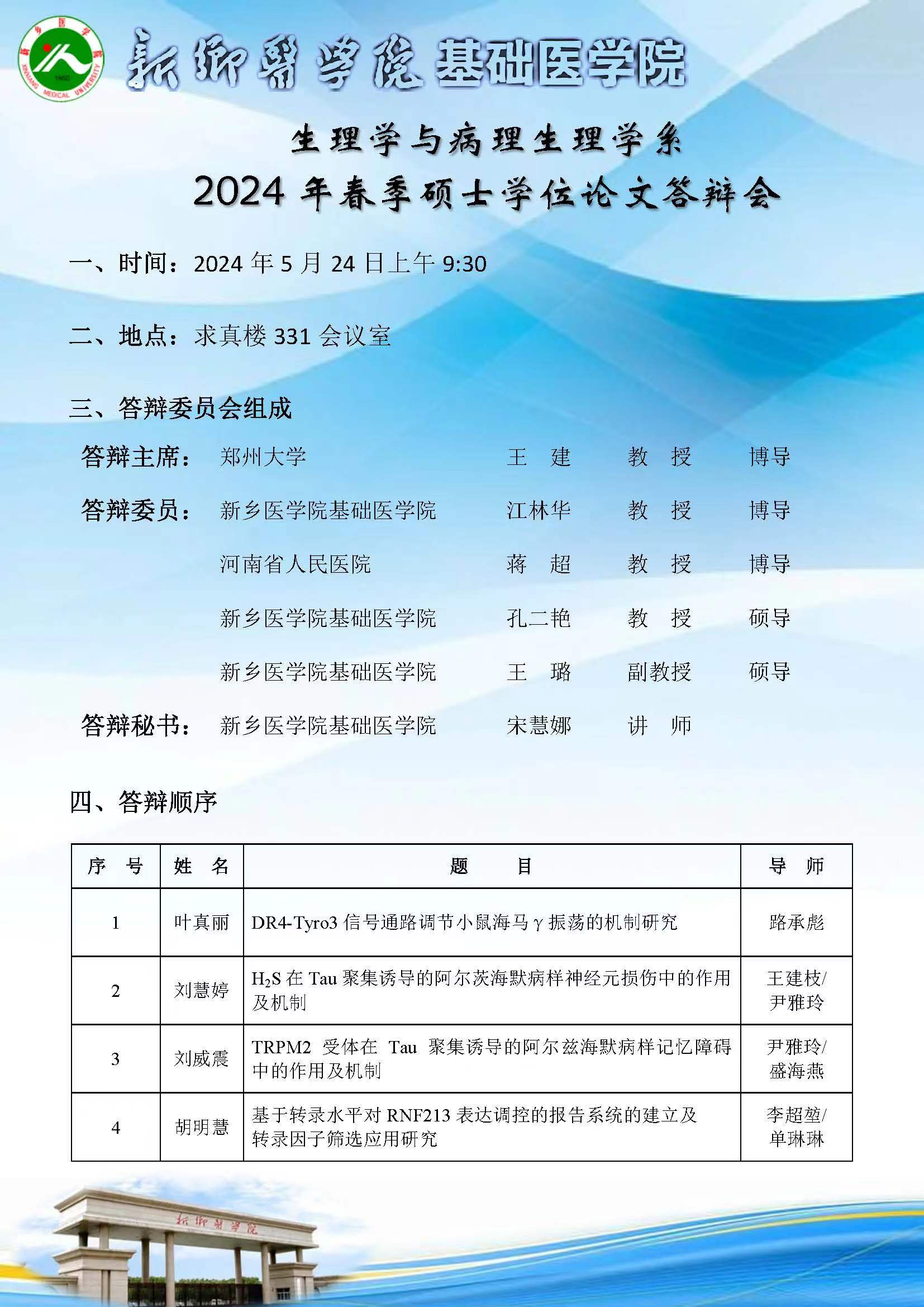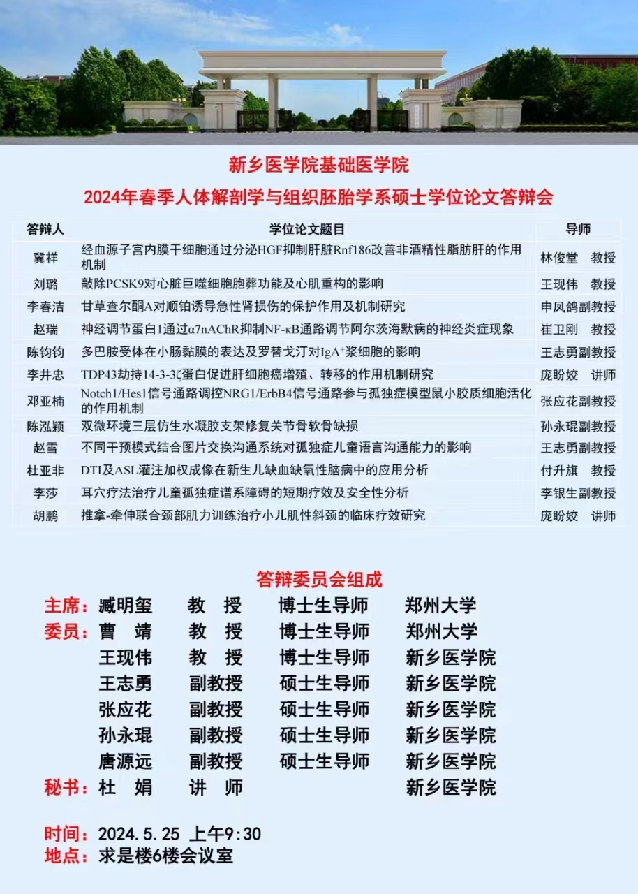 2024年春季华亿在线手机版(大中国区)基础医学院硕士学位论文答辩会