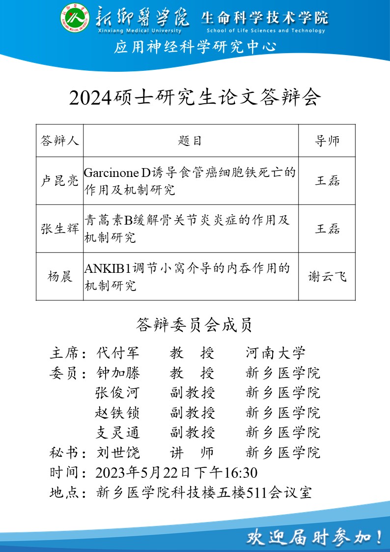 2024年春季华亿在线手机版(大中国区)基础医学院硕士学位论文答辩会