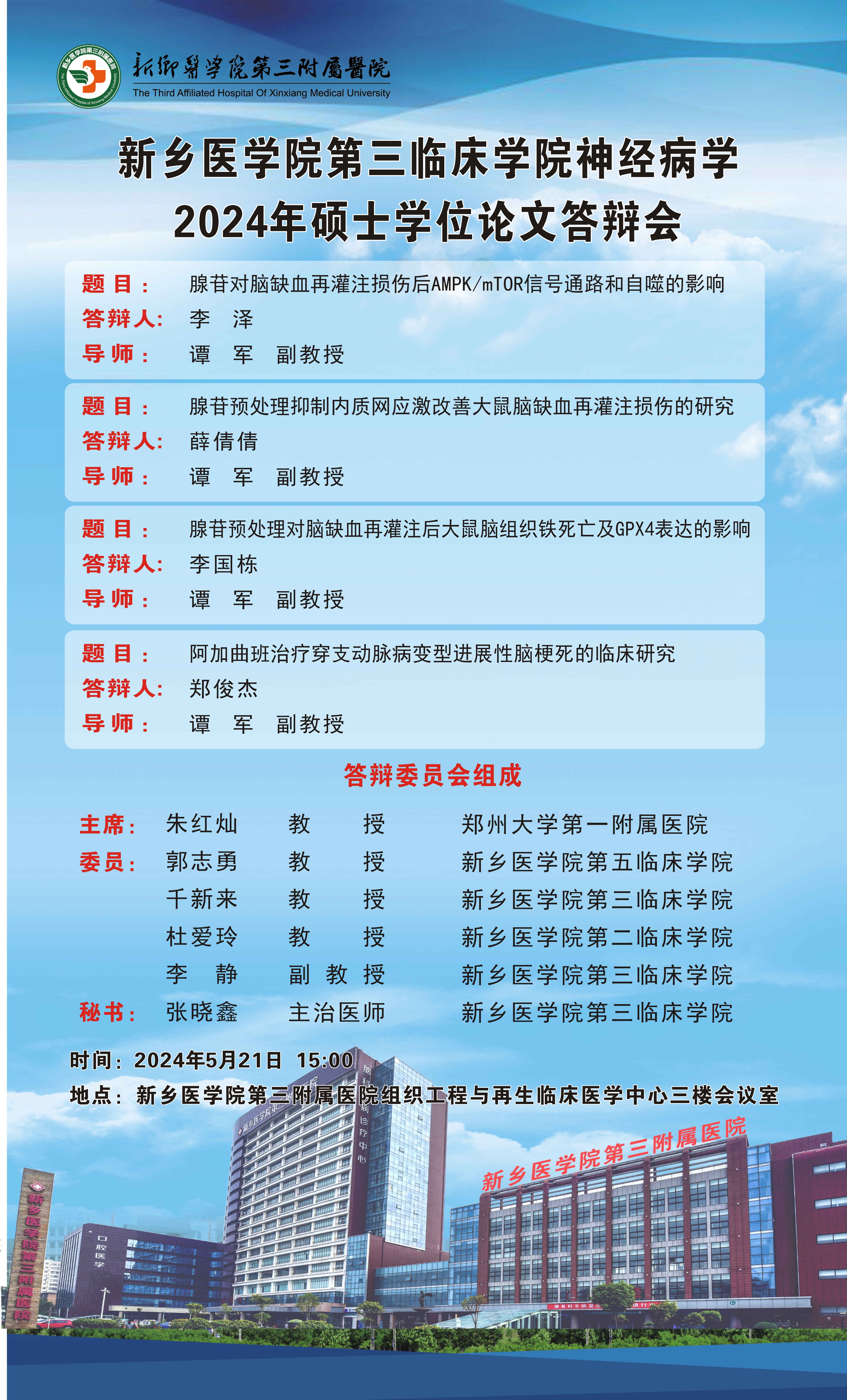 2024年春季华亿在线手机版(大中国区)第三临床学院神经病学硕士学位论文答辩会