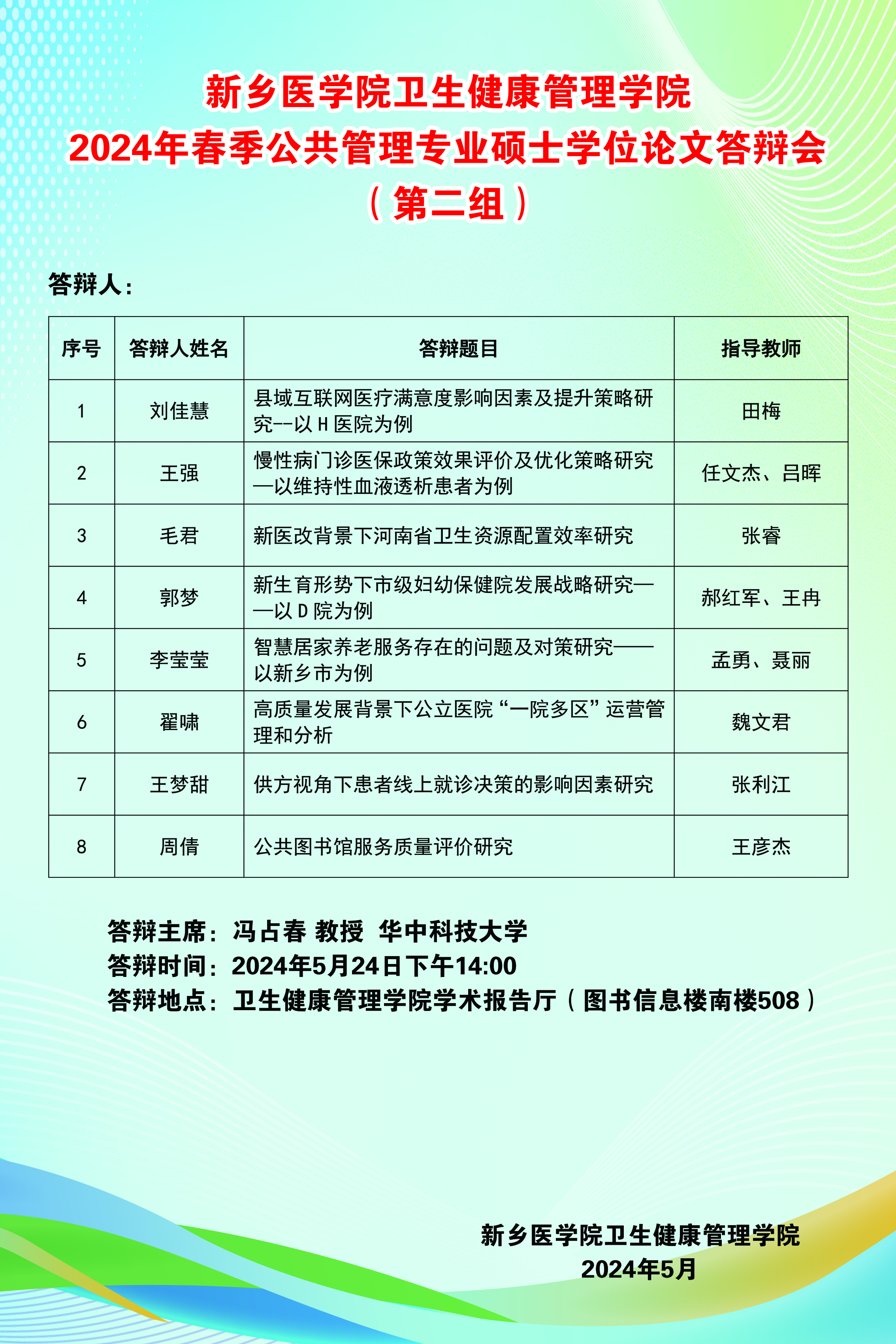 2024年春季华亿在线手机版(大中国区)卫生健康管理学院公共管理硕士学位论文答辩会