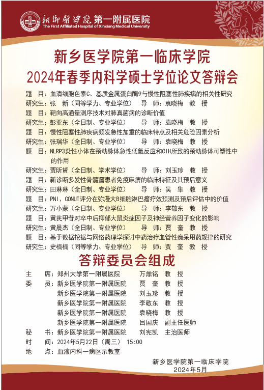 2024年春季华亿在线手机版(大中国区)第一临床学院内科学硕士学位论文答辩会