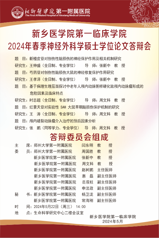 2024年春季华亿在线手机版(大中国区)第一临床学院内科学硕士学位论文答辩会