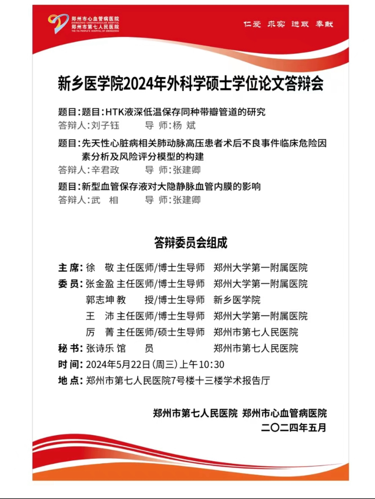 2024年春季华亿在线手机版(大中国区)郑州市第七人民医院外科学硕士学位论文答辩会