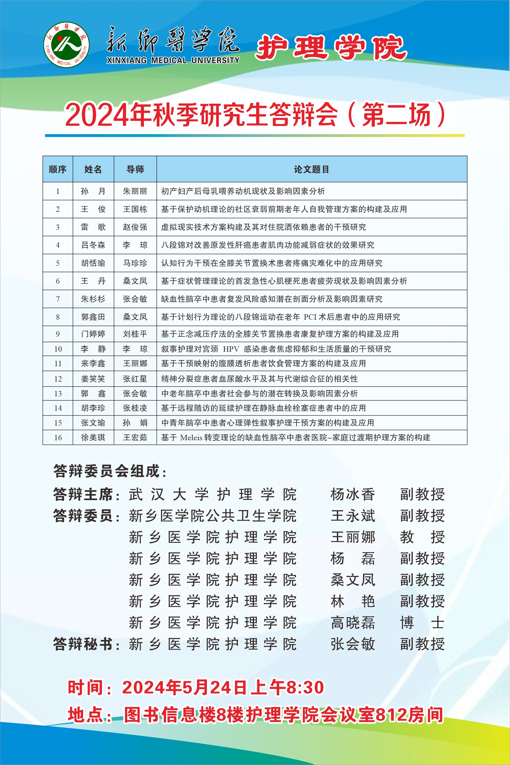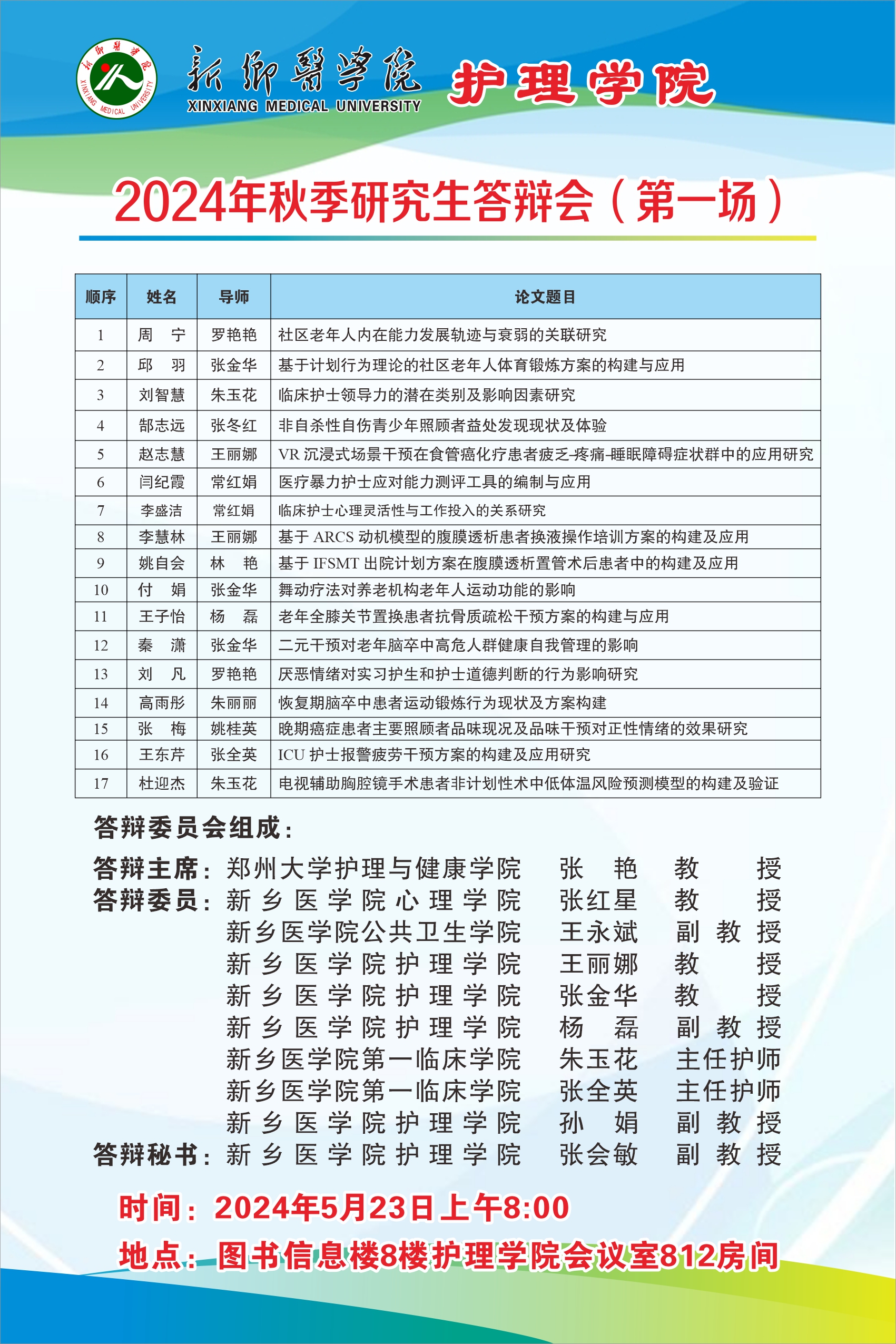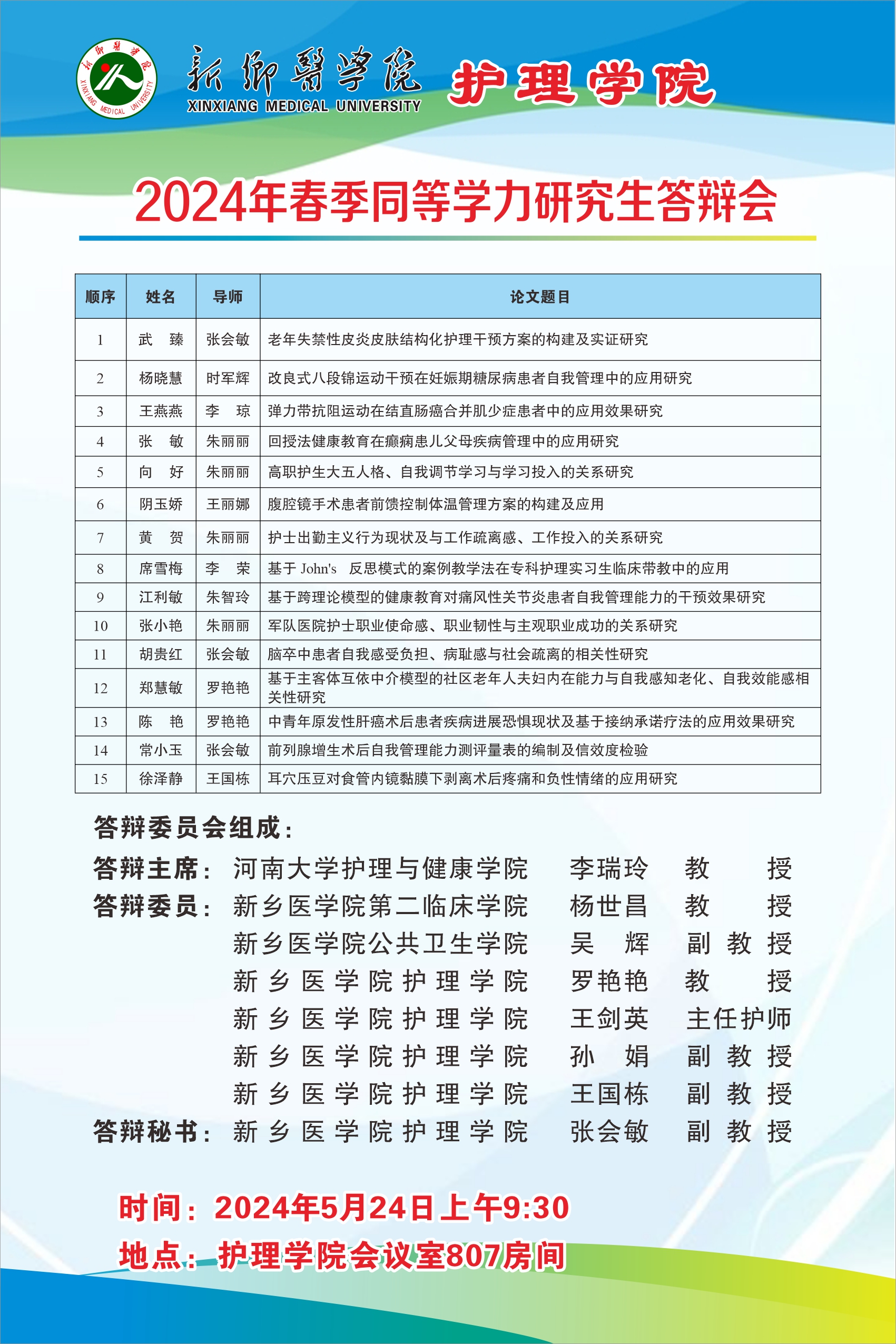 2024年春季华亿在线手机版(大中国区)护理学院硕士学位论文答辩会