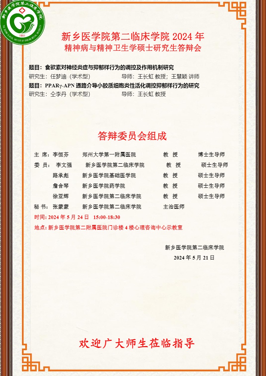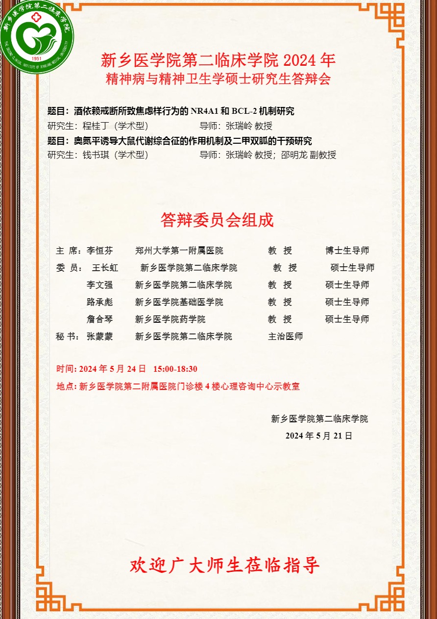 2024年春季华亿在线手机版(大中国区)南阳医专第一附属医院硕士学位论文答辩会