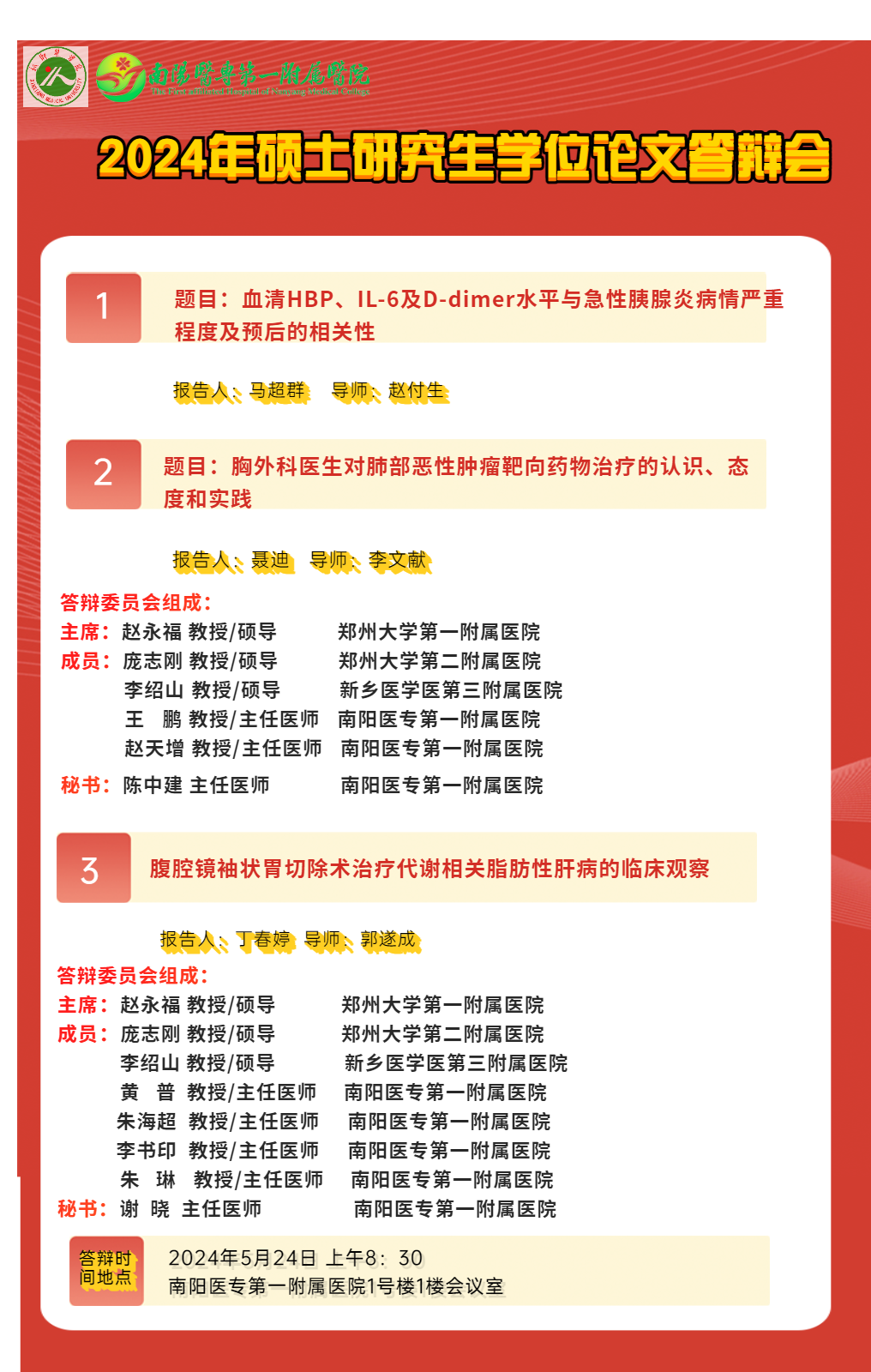 2024年春季华亿在线手机版(大中国区)南阳医专第一附属医院硕士学位论文答辩会
