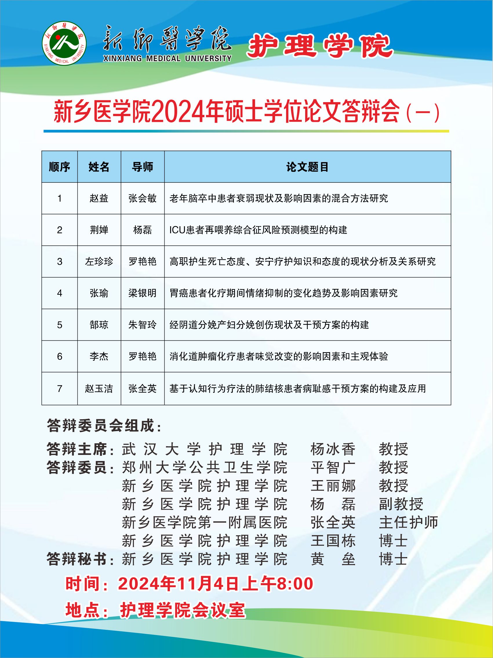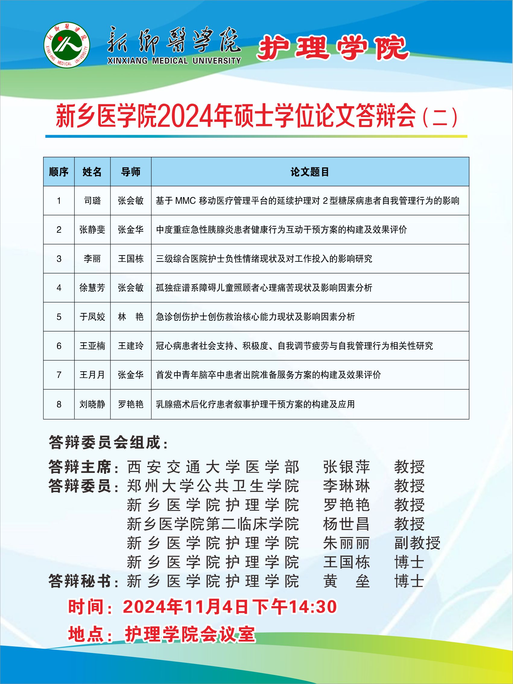 2024下半年华亿在线手机版(大中国区)护理学院硕士学位论文答辩海报