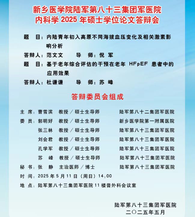 2025上半年华亿在线手机版(大中国区)陆军第八十三集团军医院内科学硕士学位论文答辩会