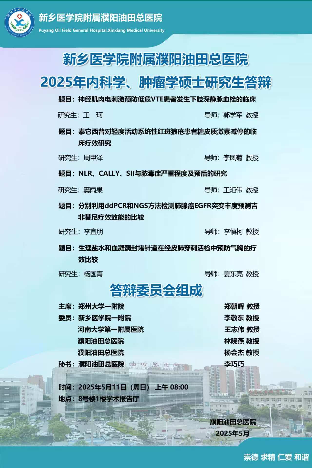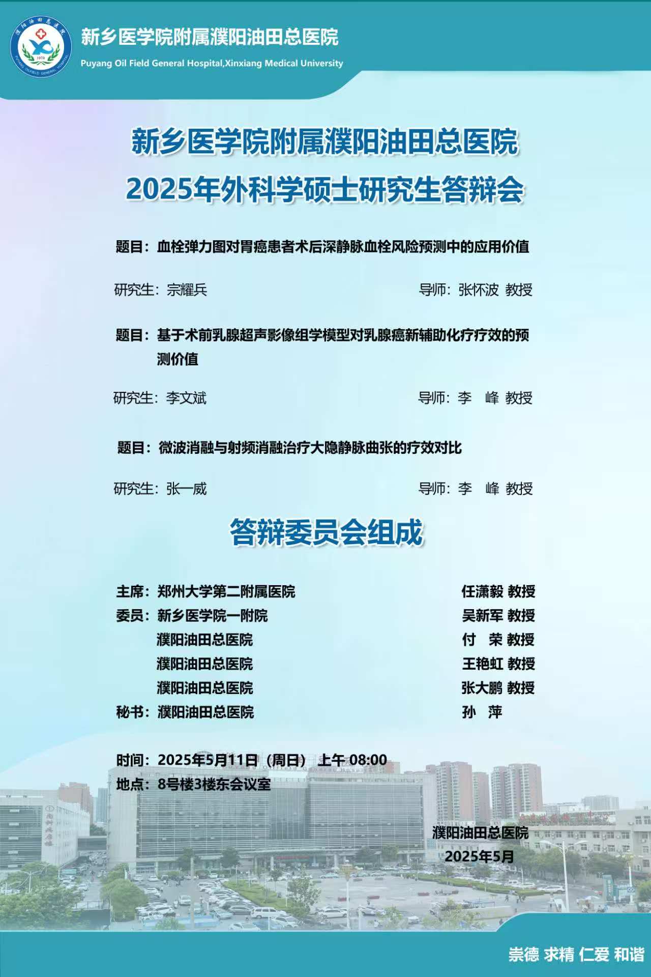 2025上半年华亿在线手机版(大中国区)濮阳油田总医院硕士学位论文答辩会