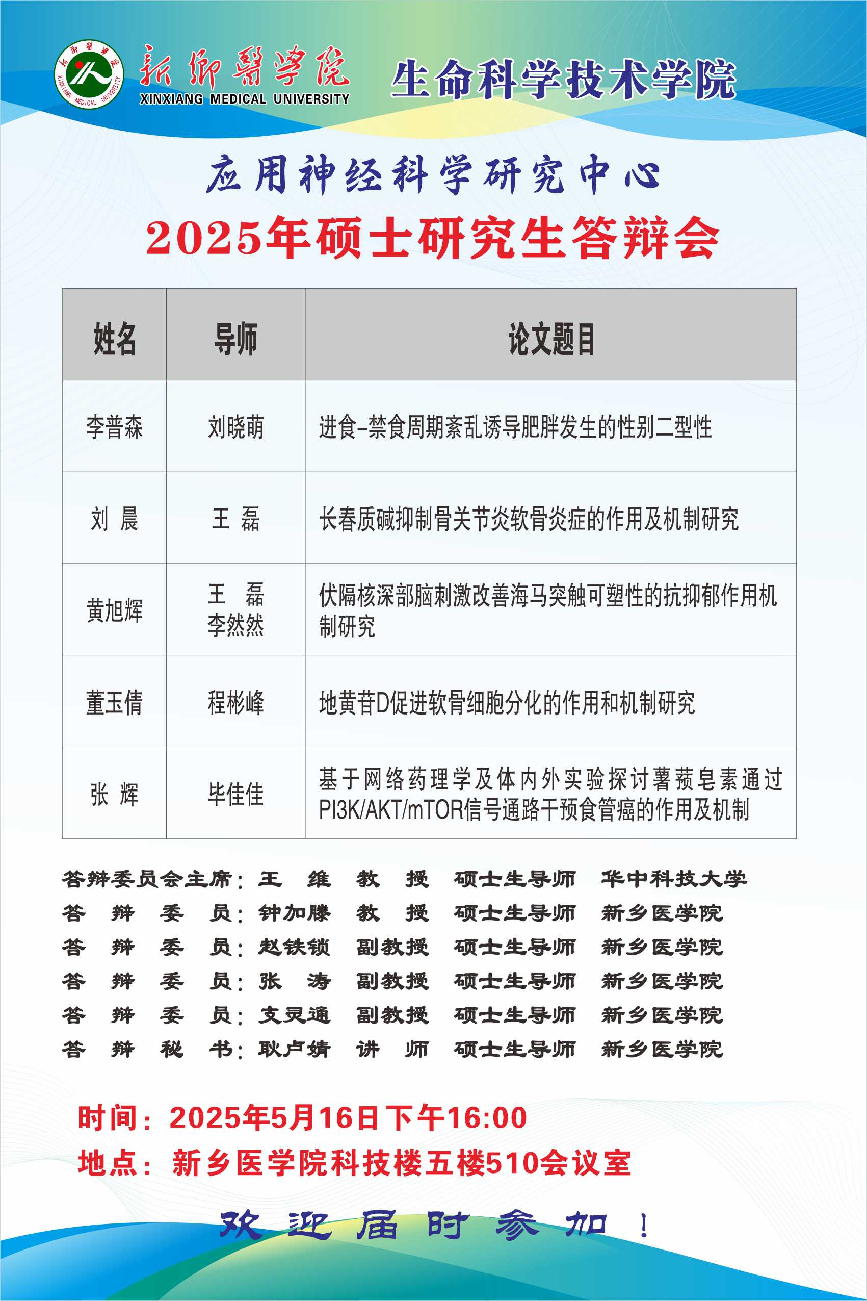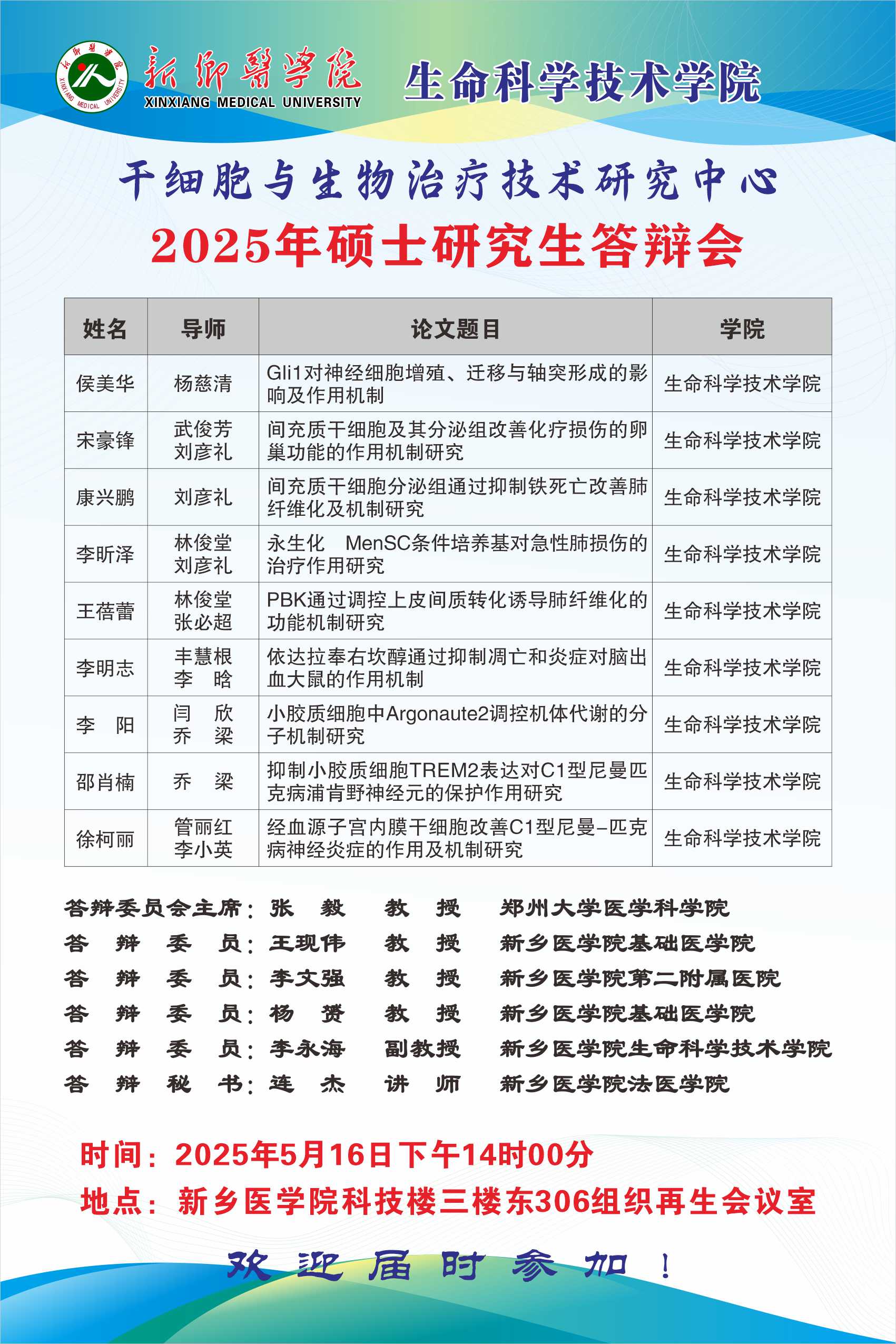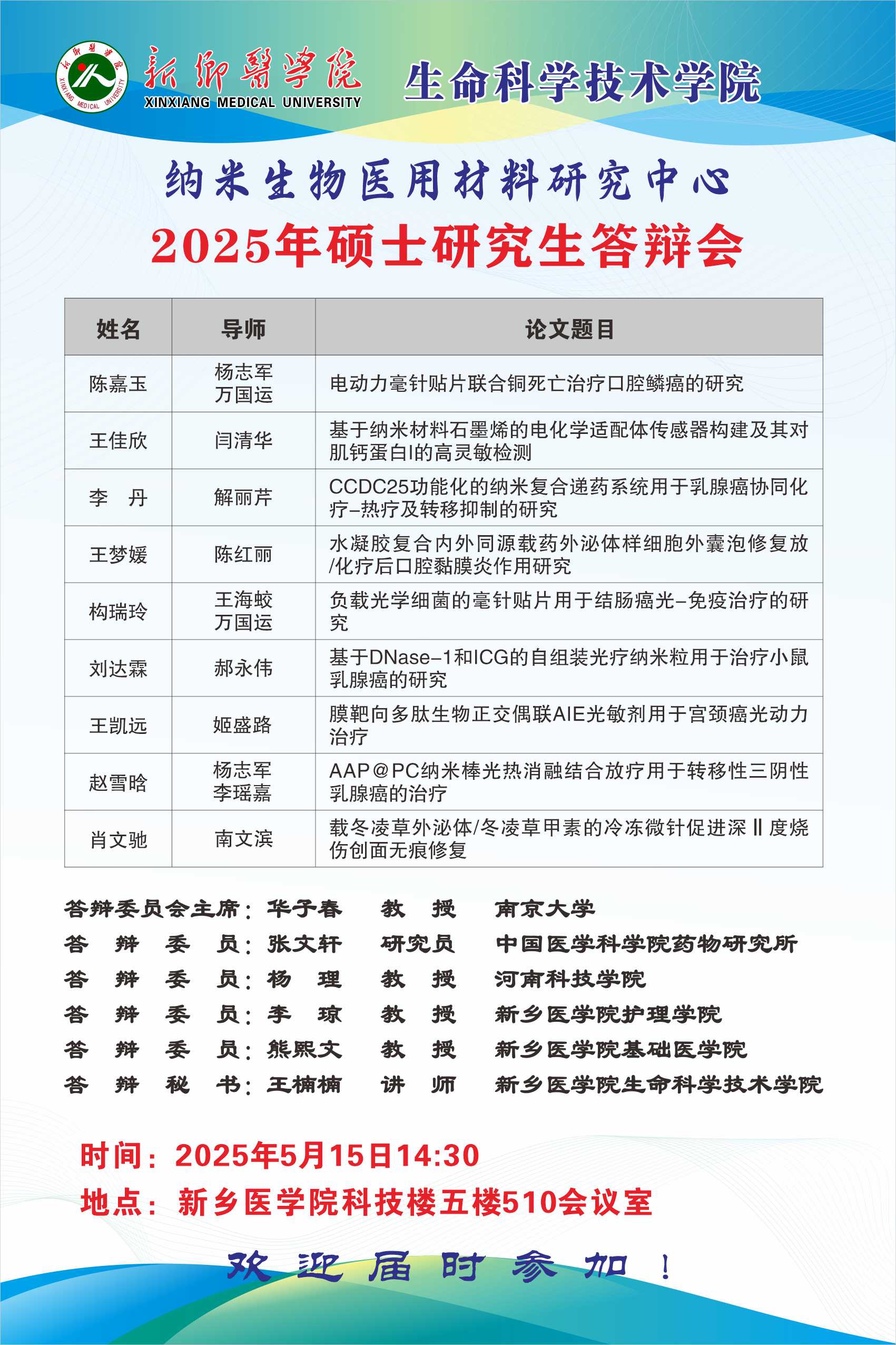 2025上半年华亿在线手机版(大中国区)生命科学技术学院硕士学位论文答辩会
