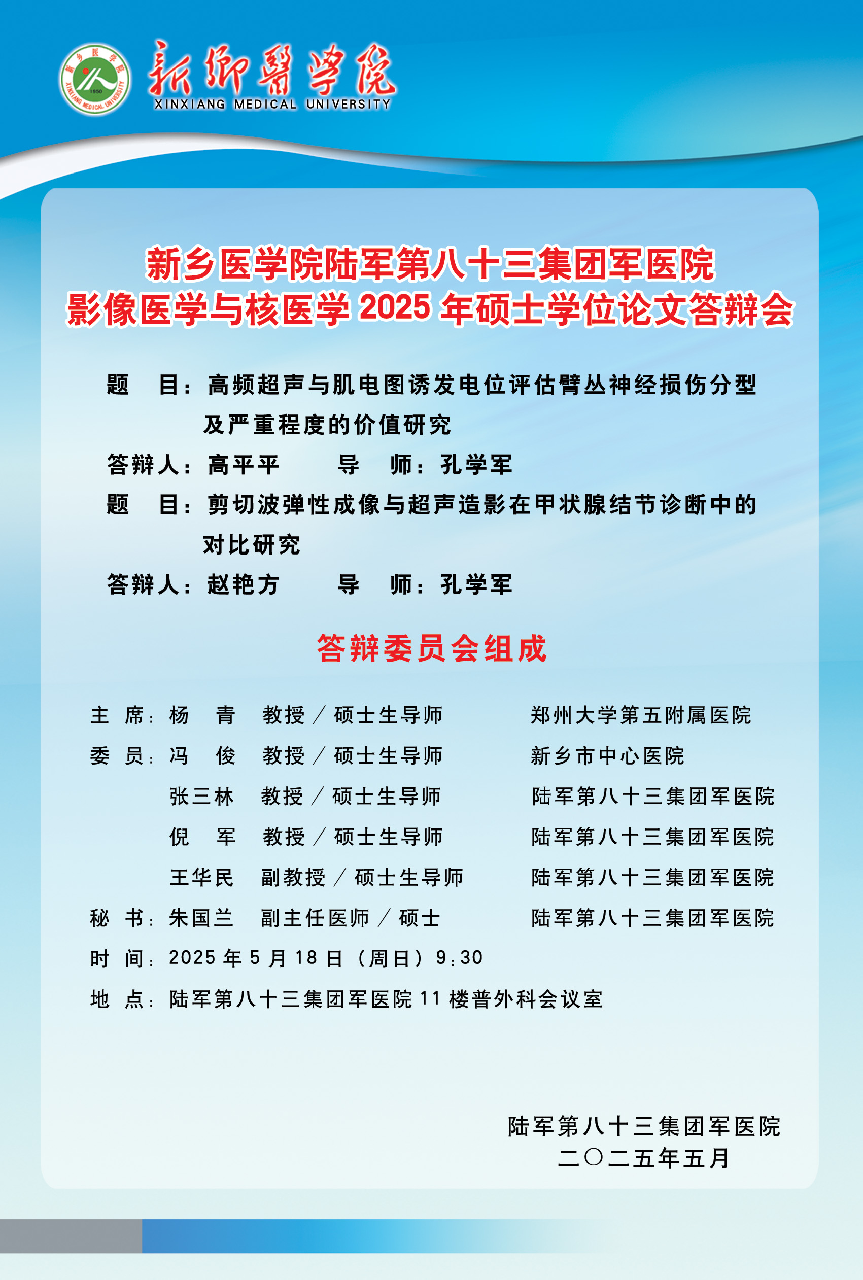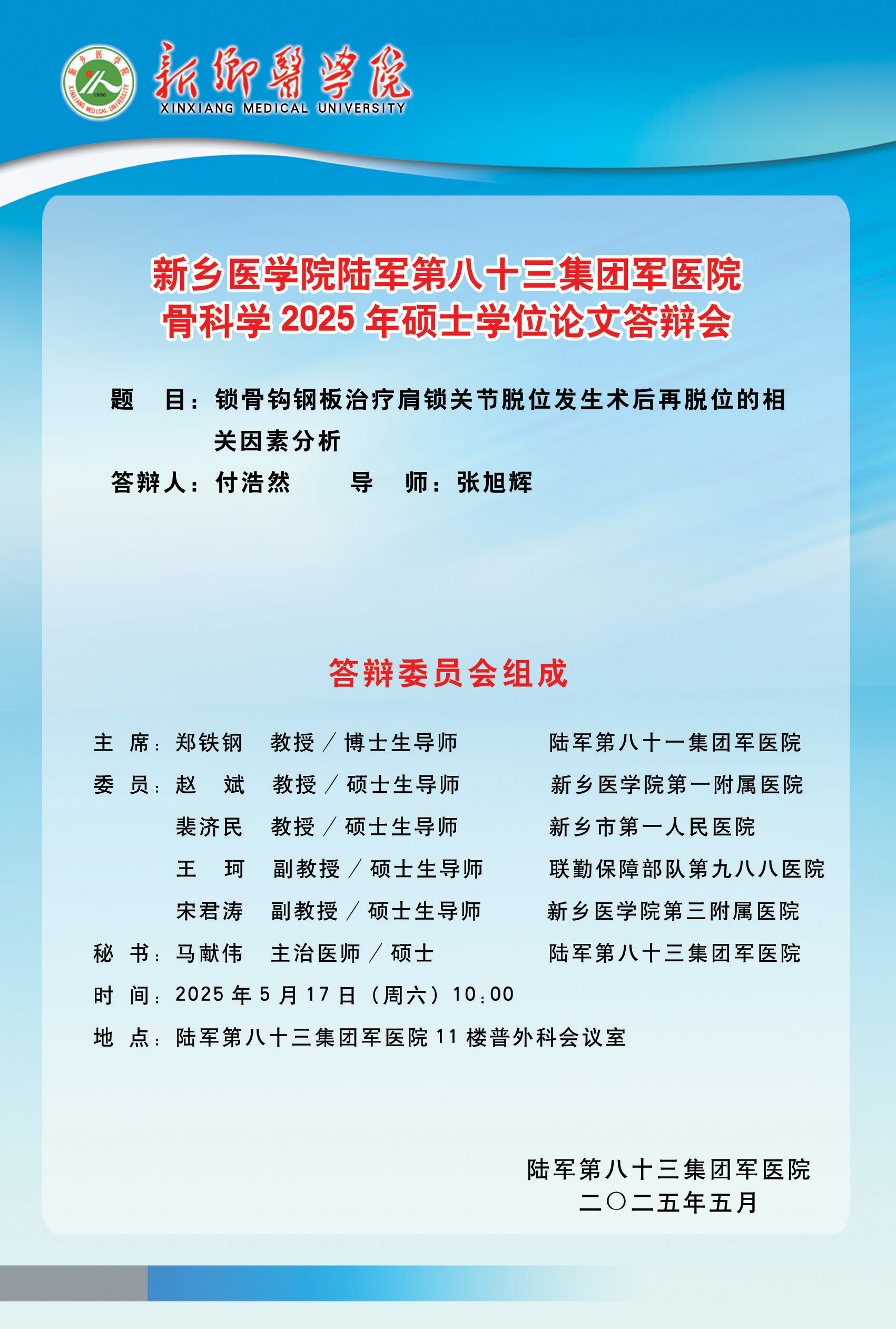 2025上半年华亿在线手机版(大中国区)陆军第八十三集团军医院硕士学位论文答辩会