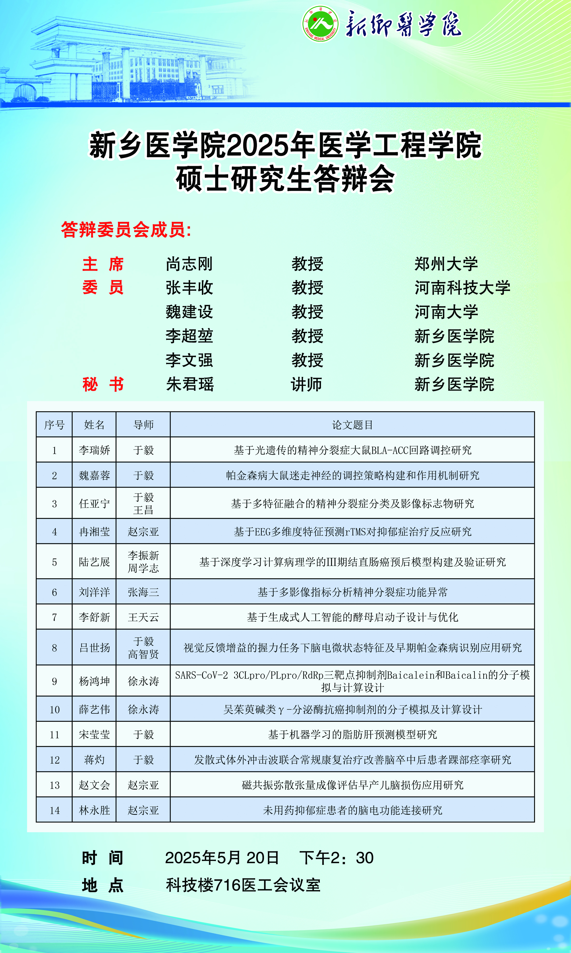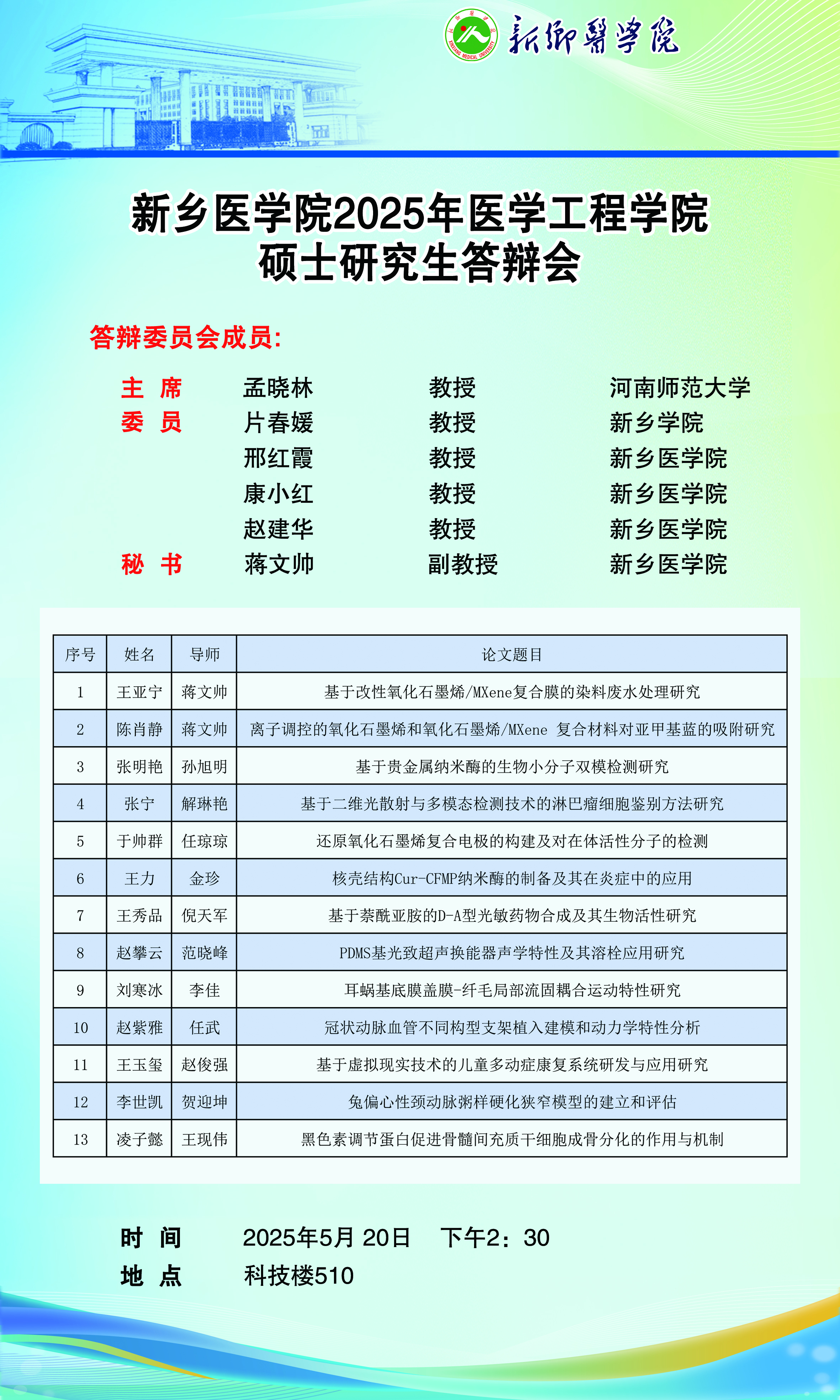 2025上半年华亿在线手机版(大中国区)医学工程学院硕士学位论文答辩会