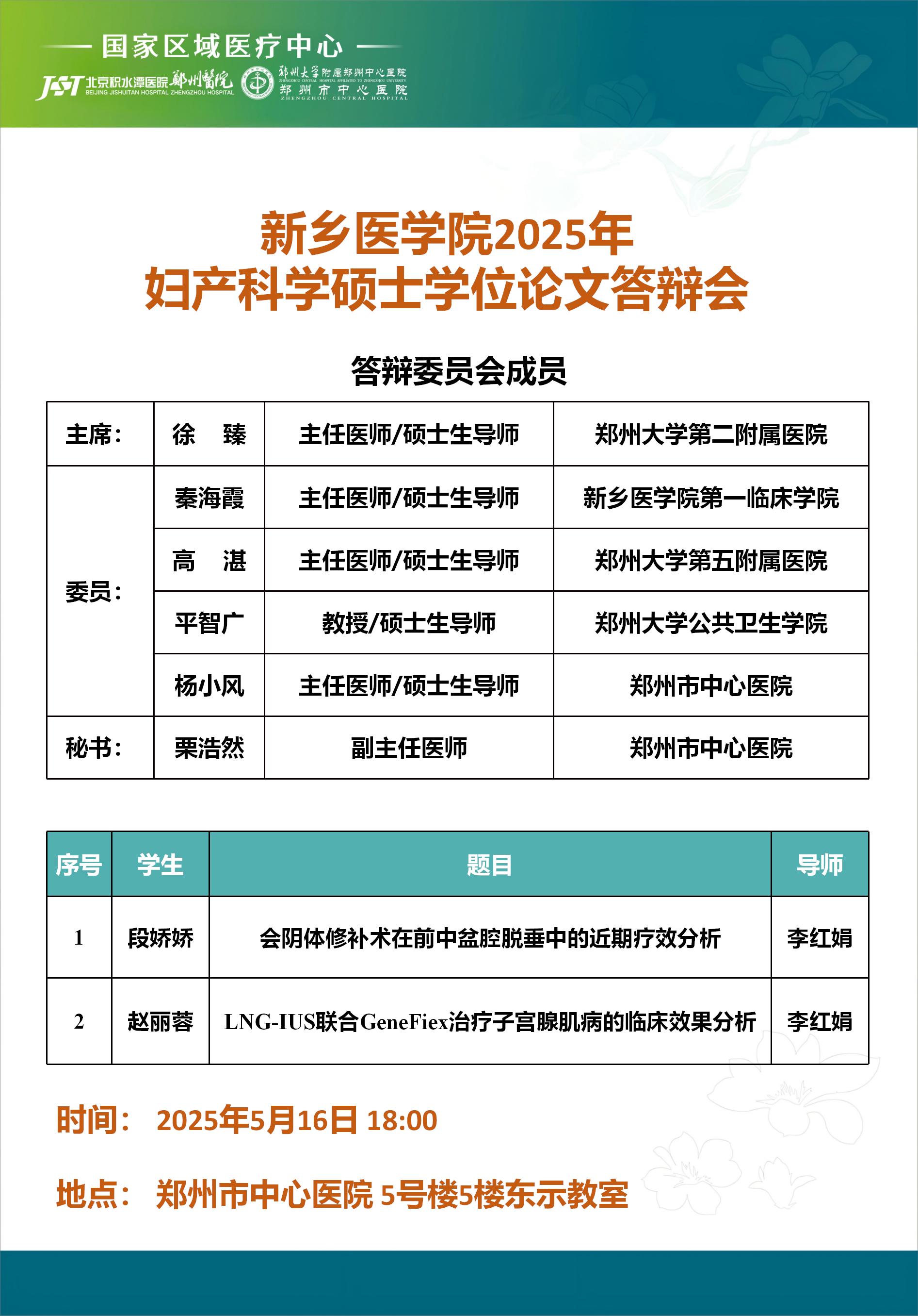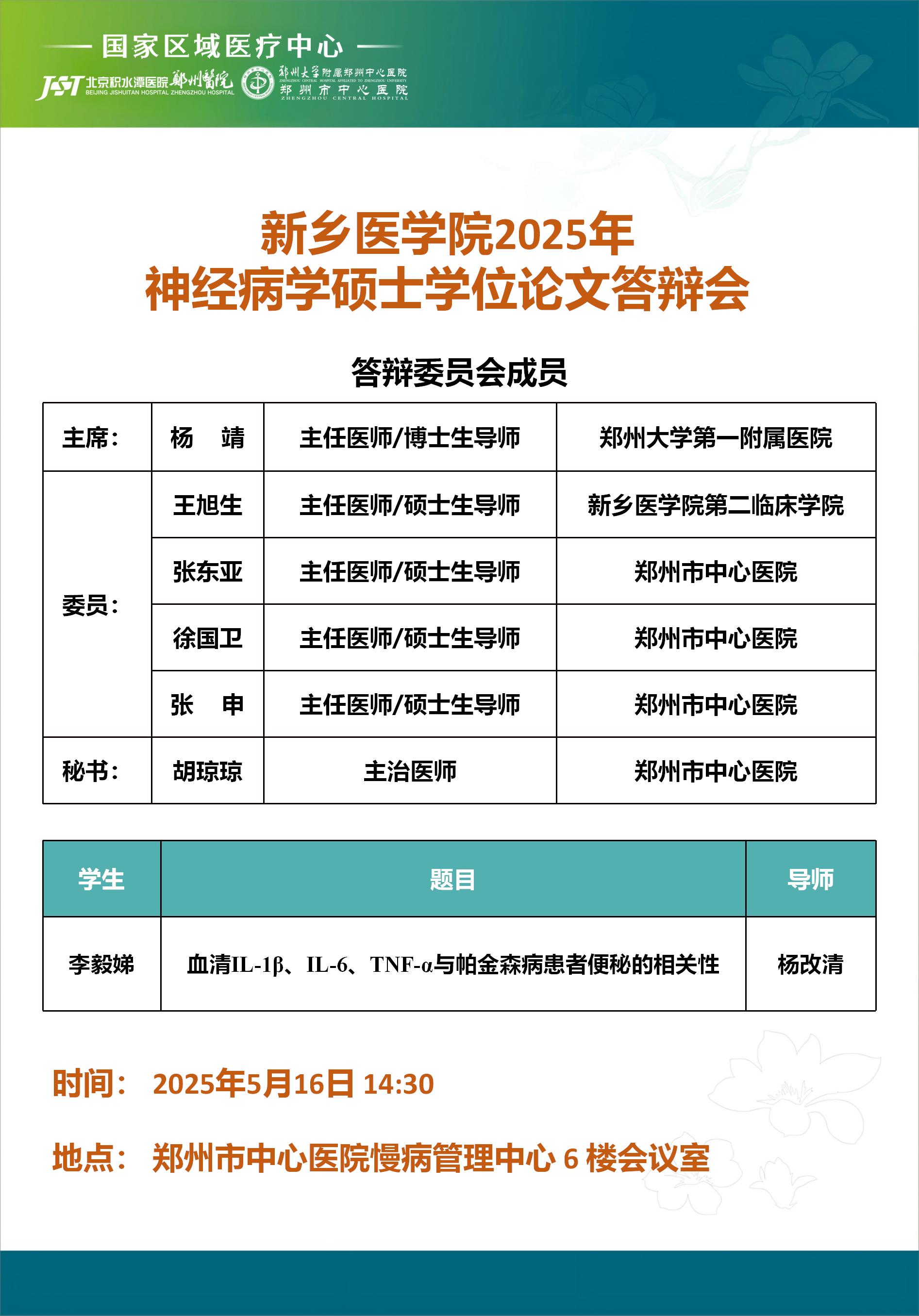 2025上半年华亿在线手机版(大中国区)郑州市中心医院妇产科学、神经病学硕士学位论文答辩会