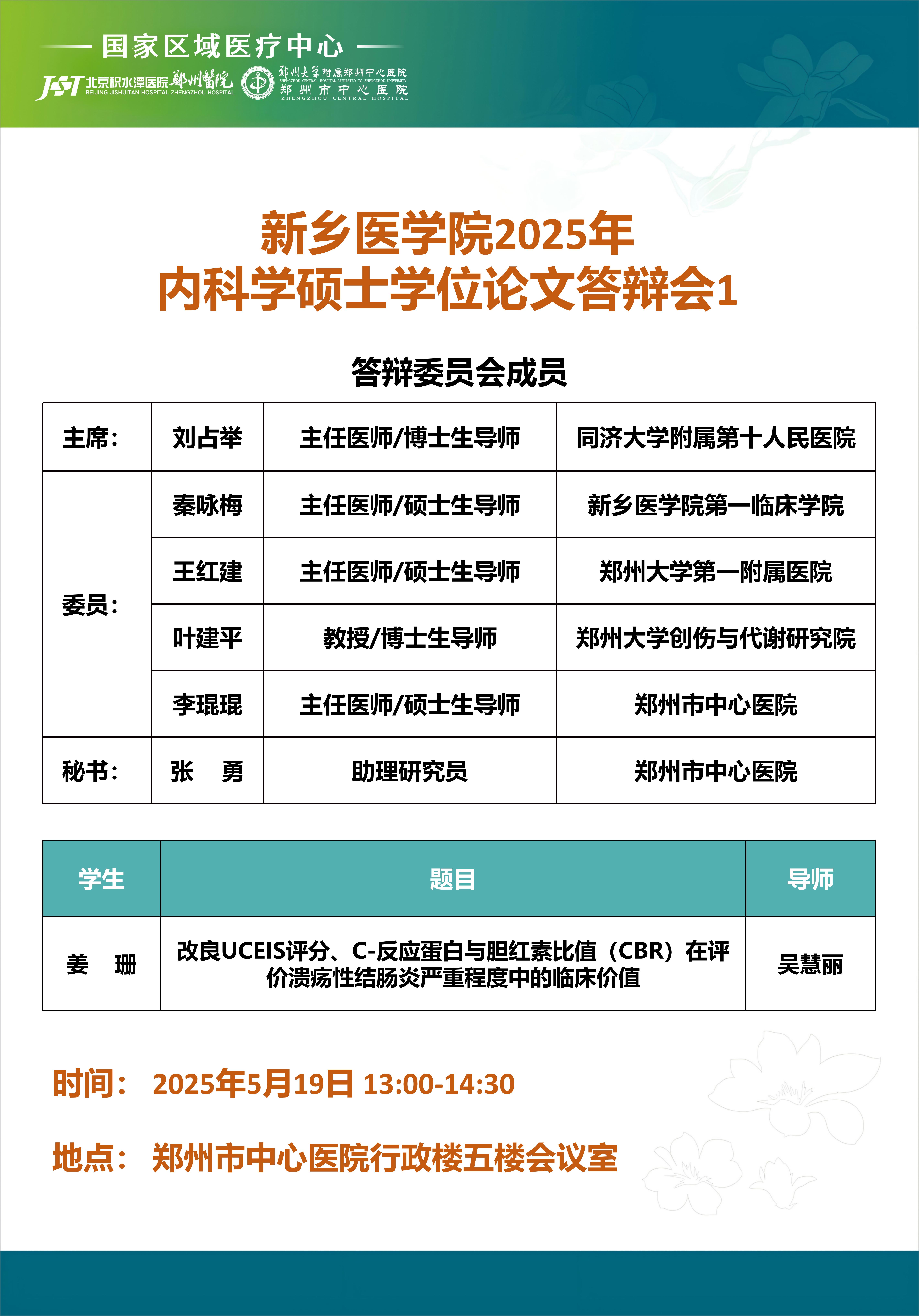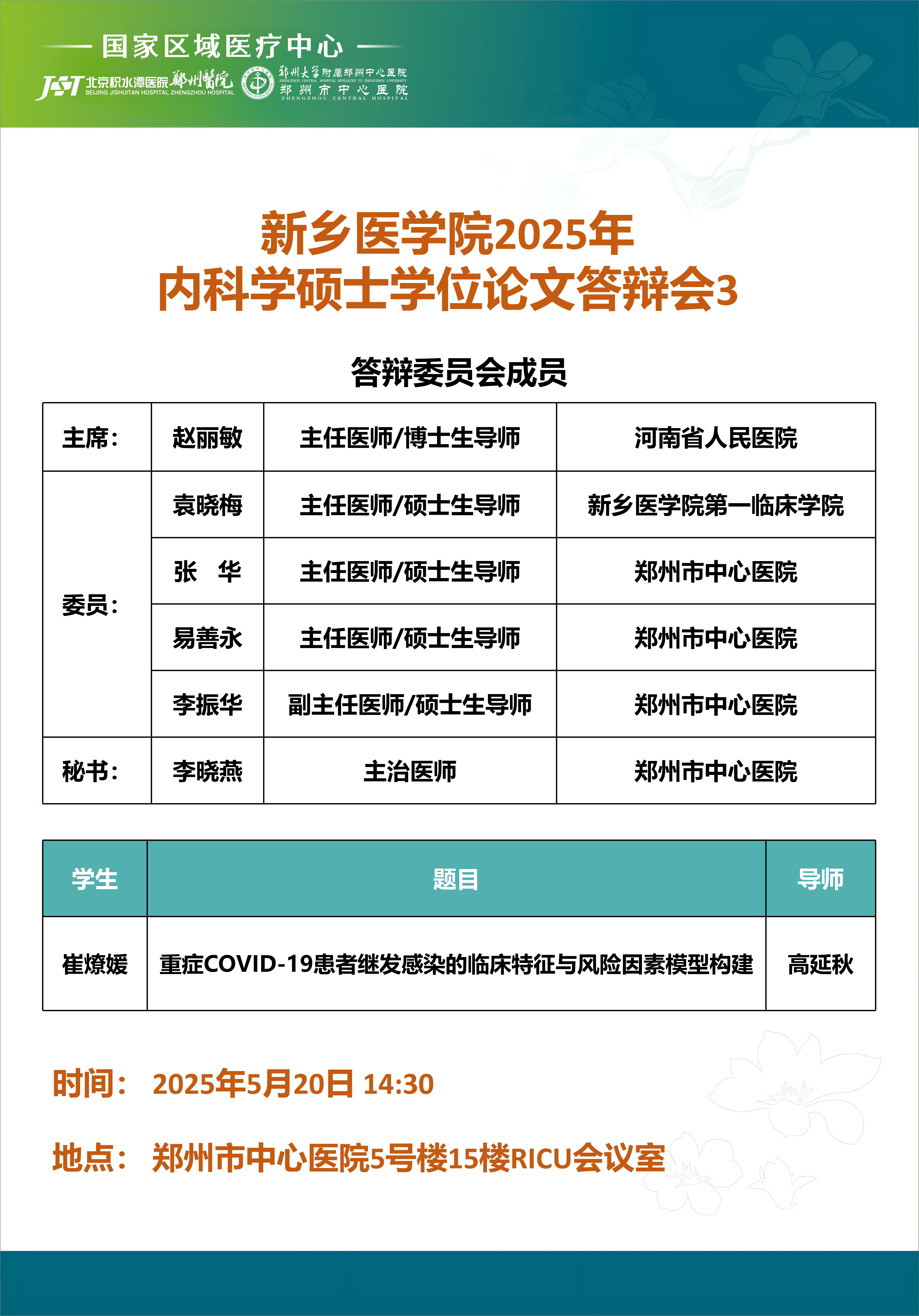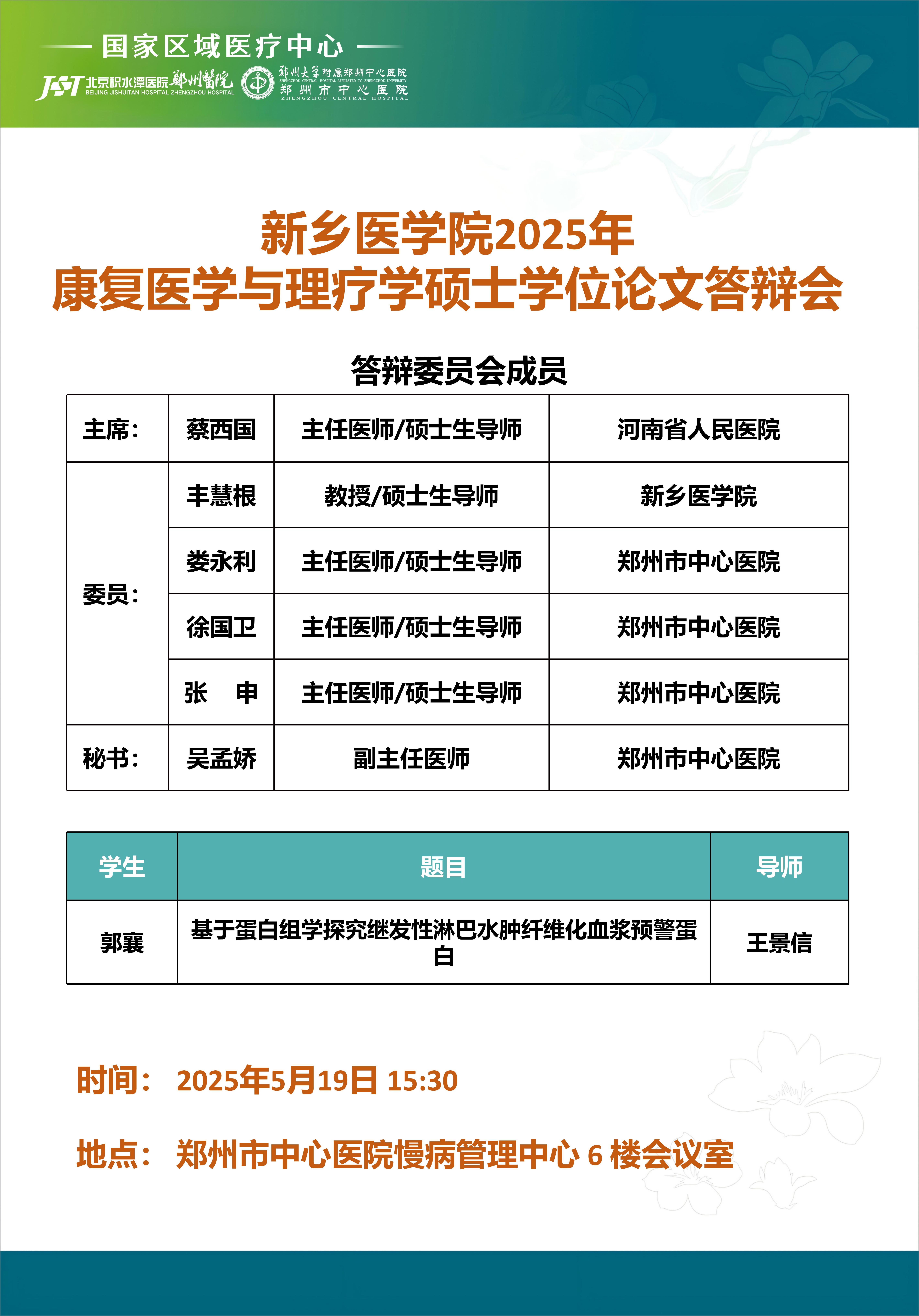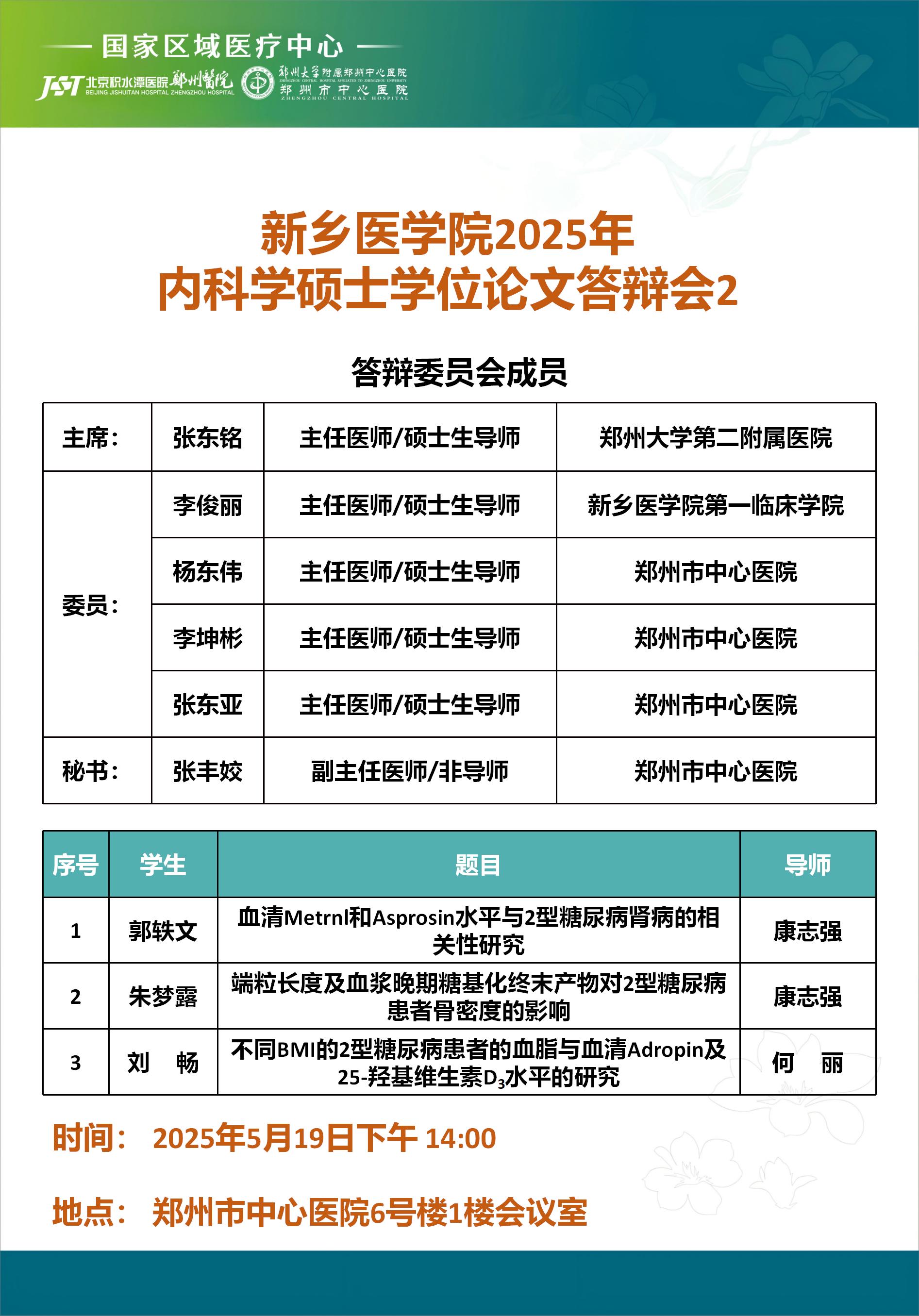 2025上半年华亿在线手机版(大中国区)郑州市中心医院内科学、康复医学与理疗学硕士学位论文答辩会