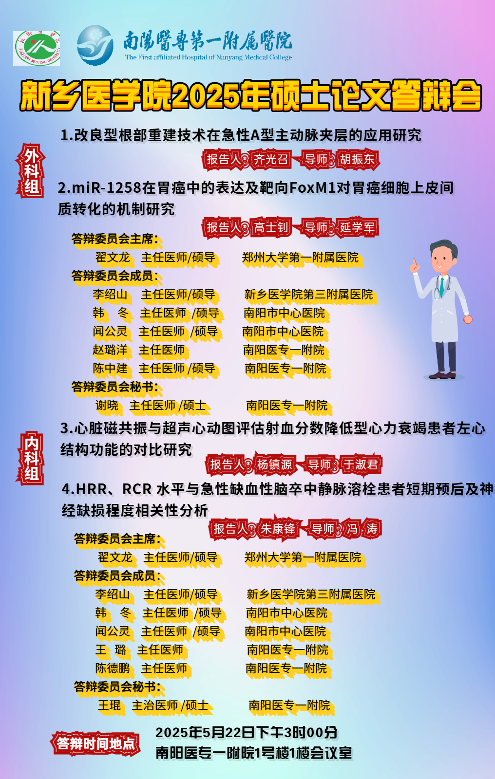 2025上半年华亿在线手机版(大中国区)南阳医专第一附属医院外科学、内科学硕士学位论文答辩会
