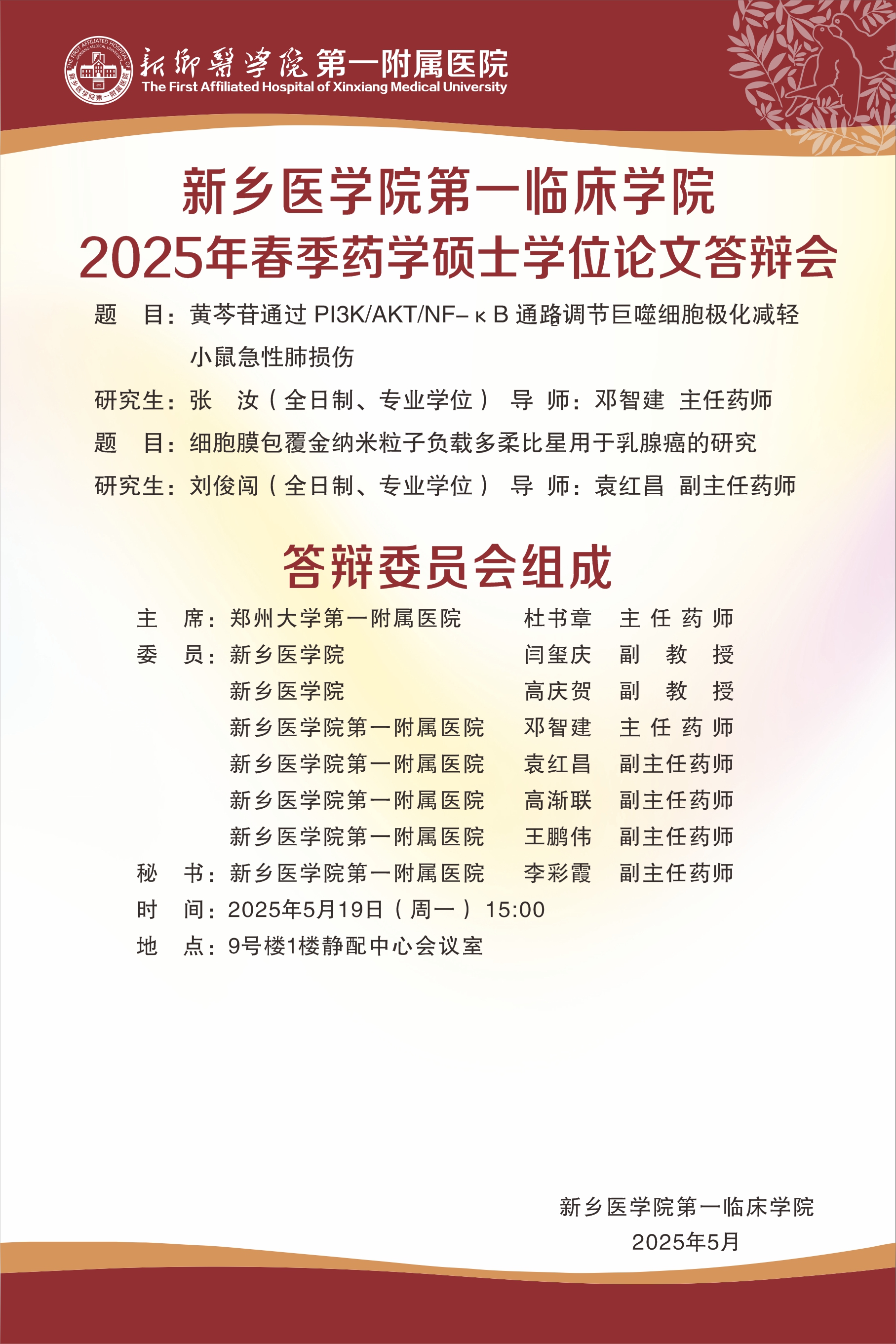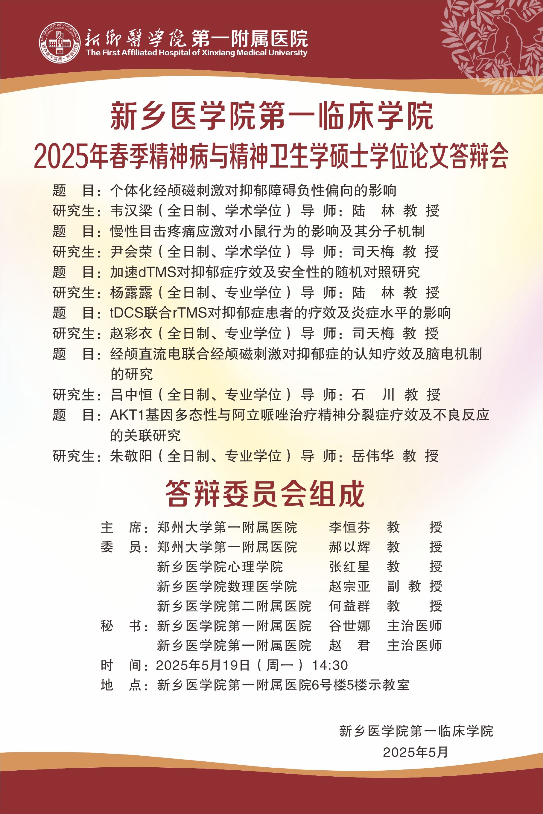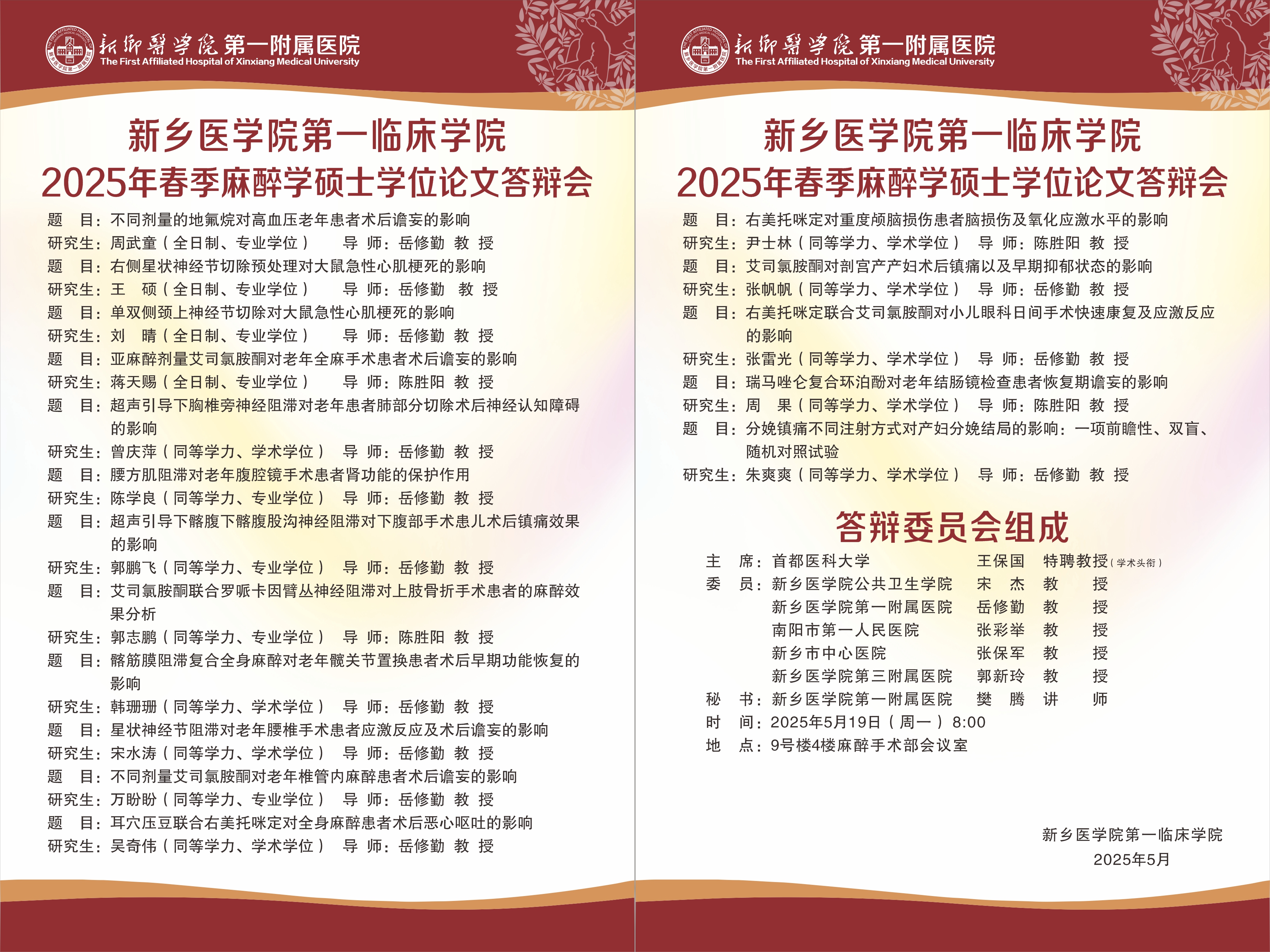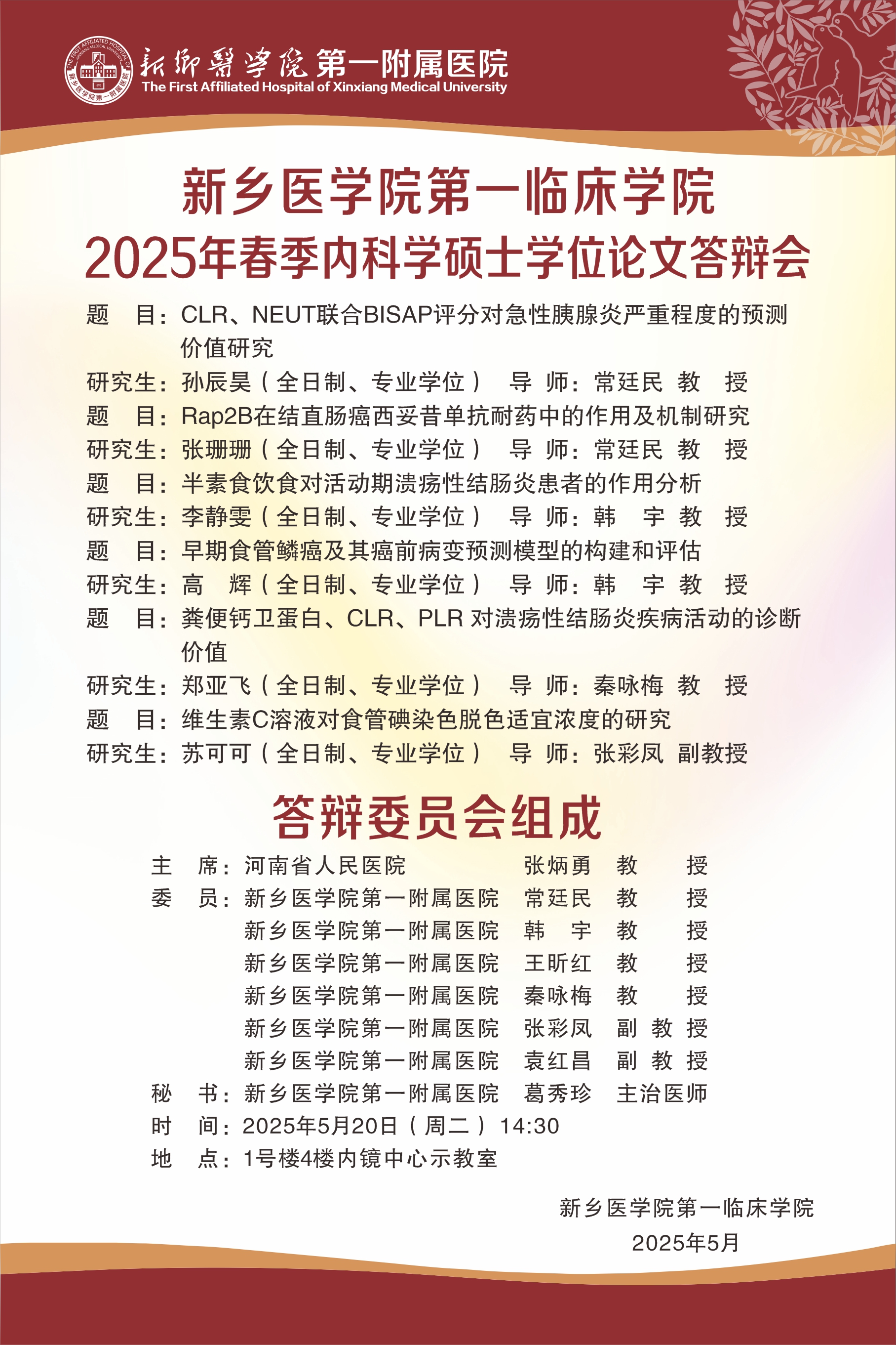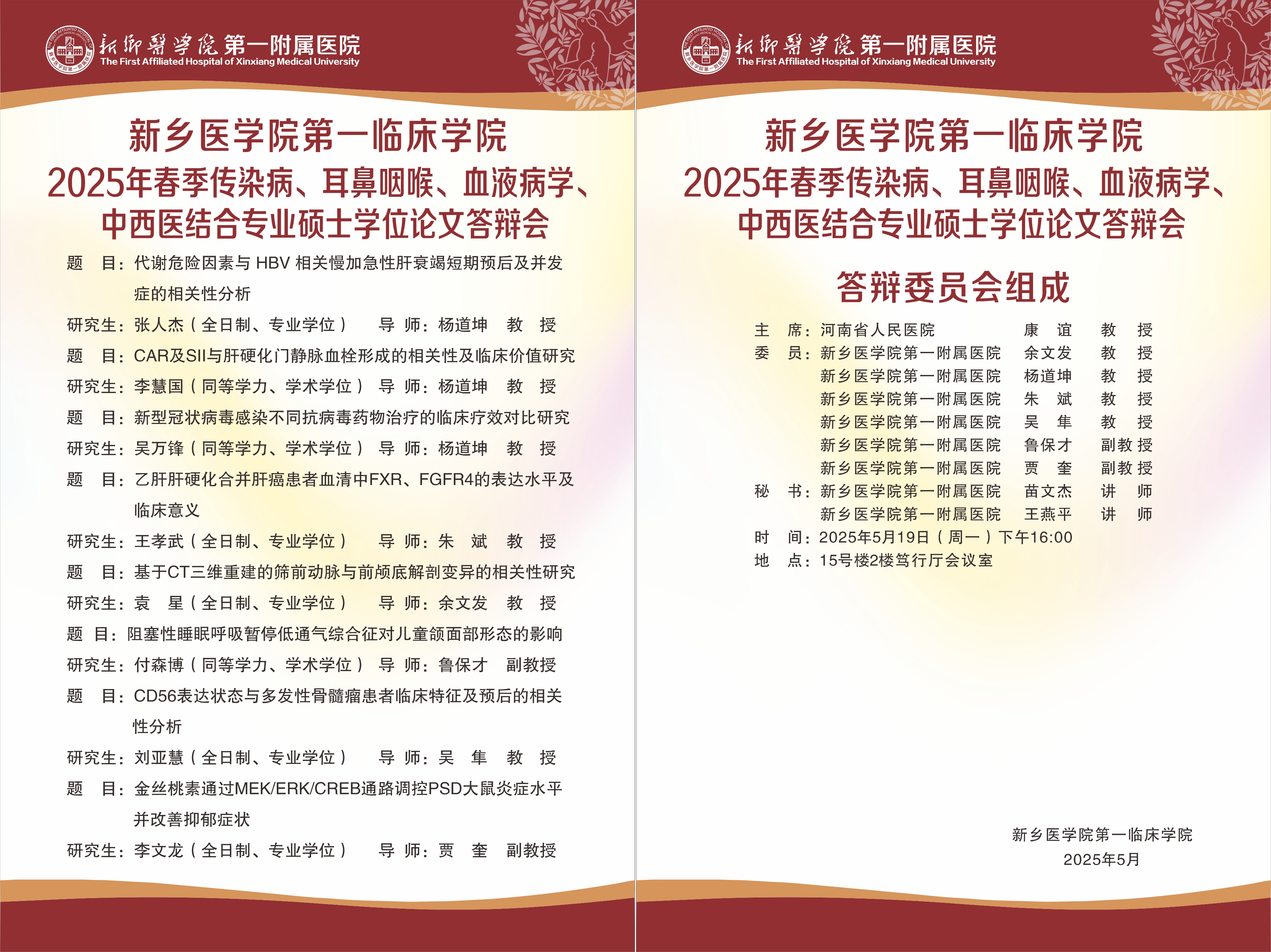 2025上半年华亿在线手机版(大中国区)第一临床学院硕士学位论文答辩会