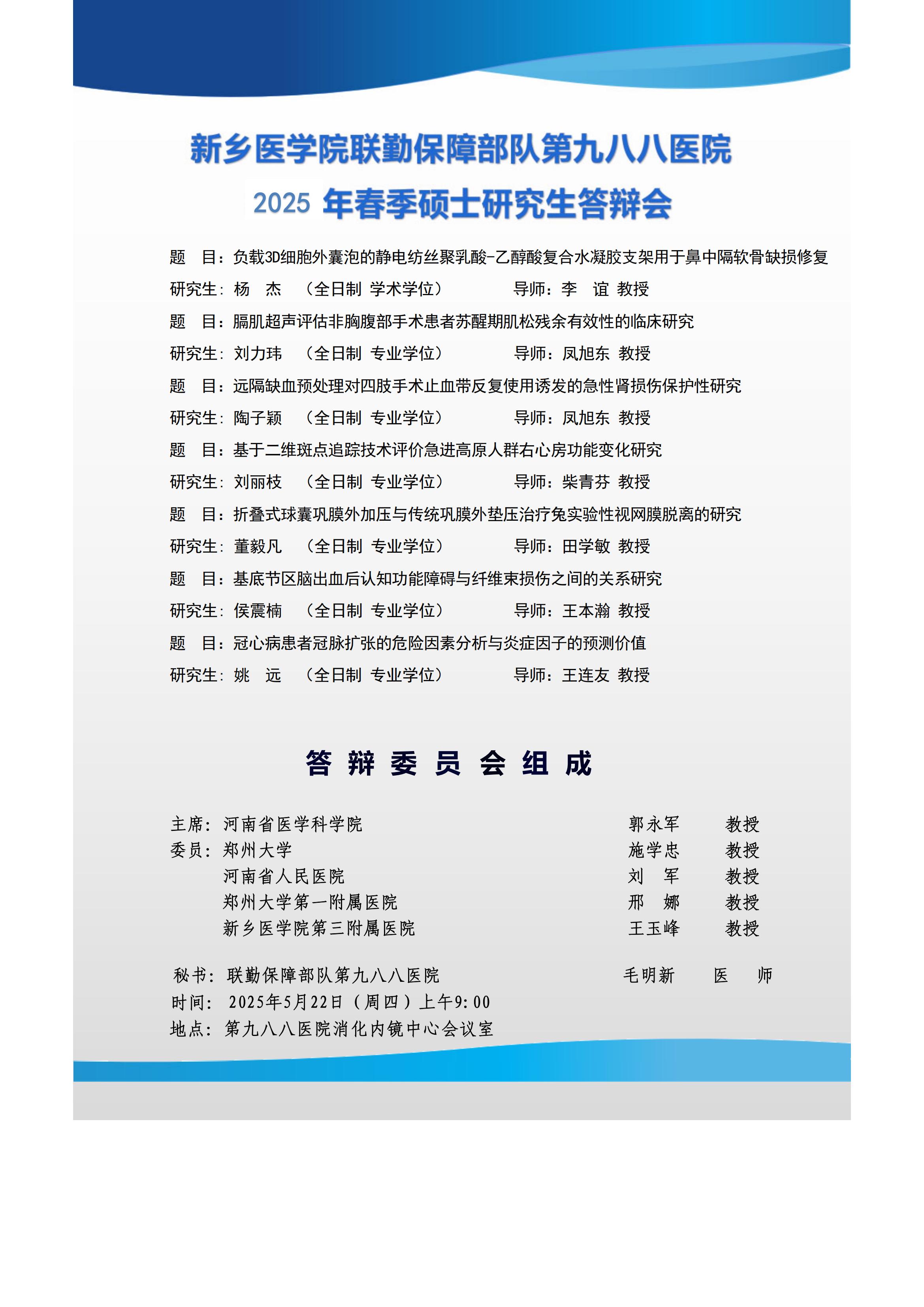 2025上半年华亿在线手机版(大中国区)联勤保障部队第九八八医院硕士学位论文答辩会