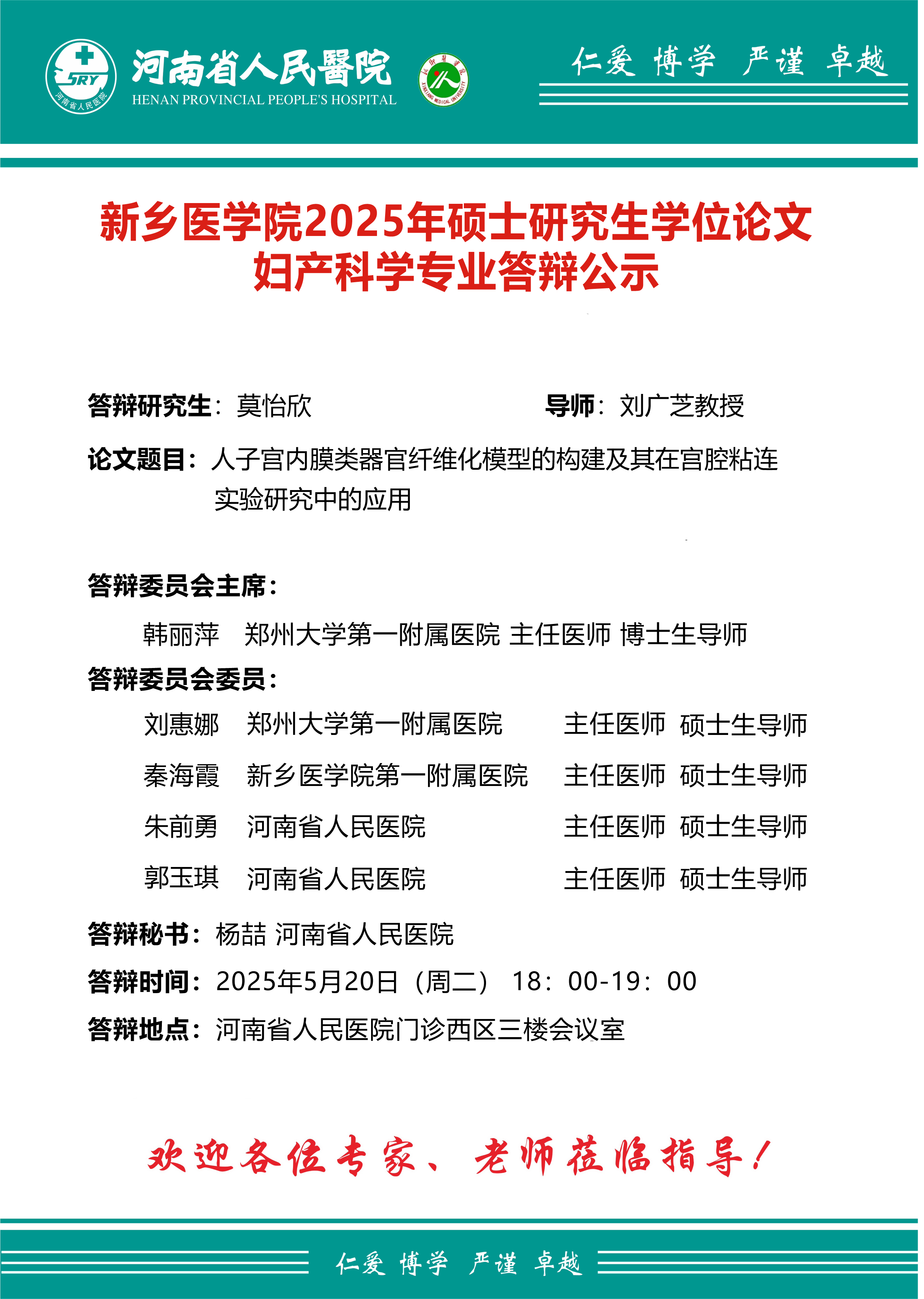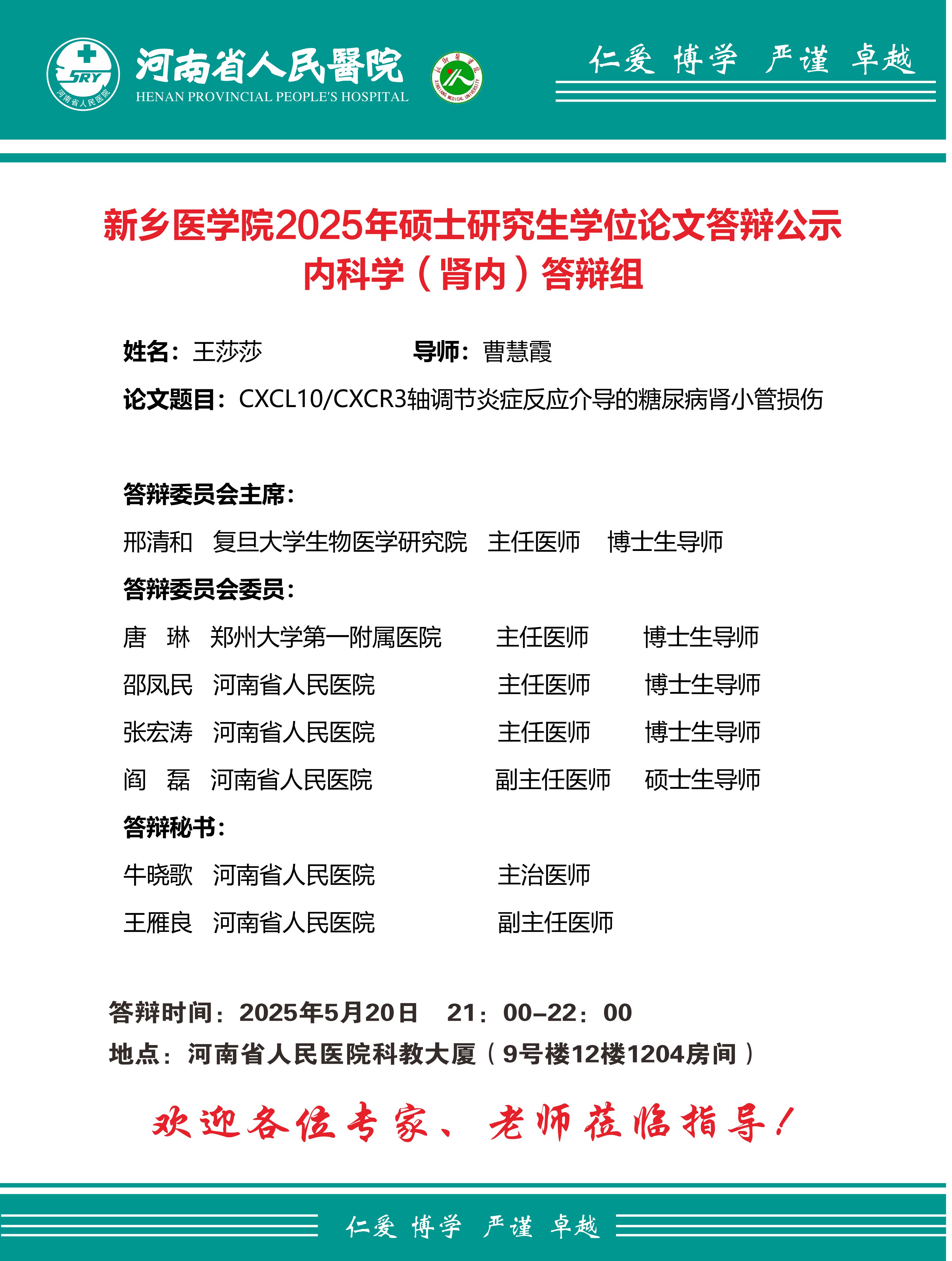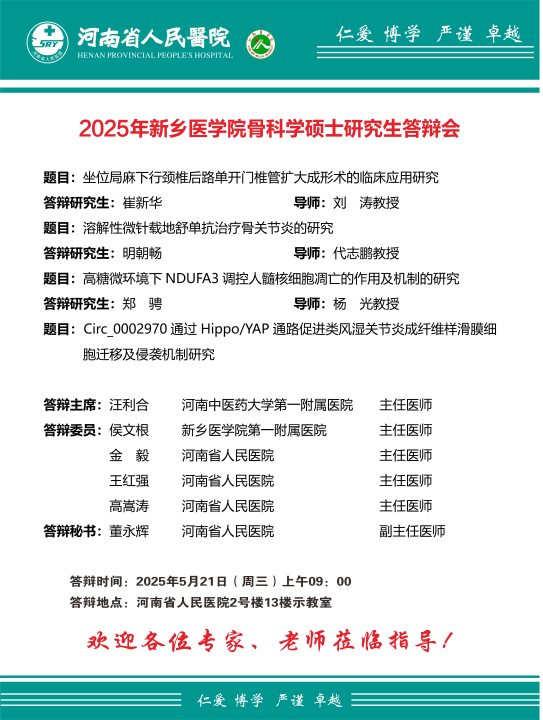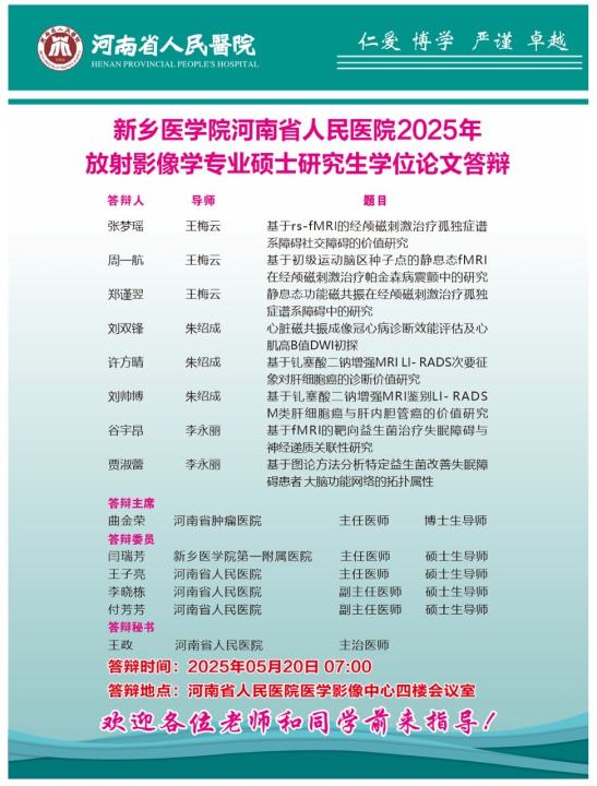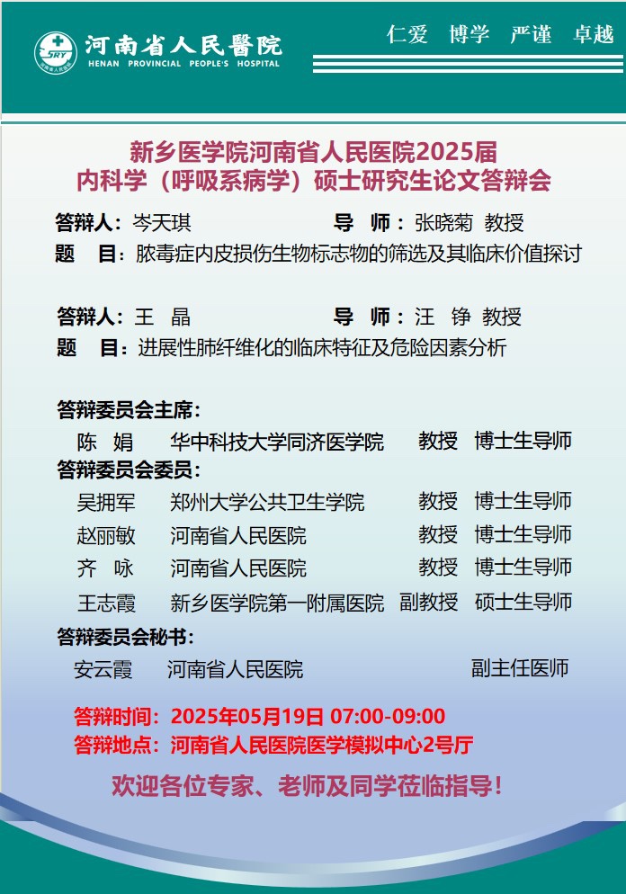 2025上半年华亿在线手机版(大中国区)河南省人民医院硕士学位论文答辩会