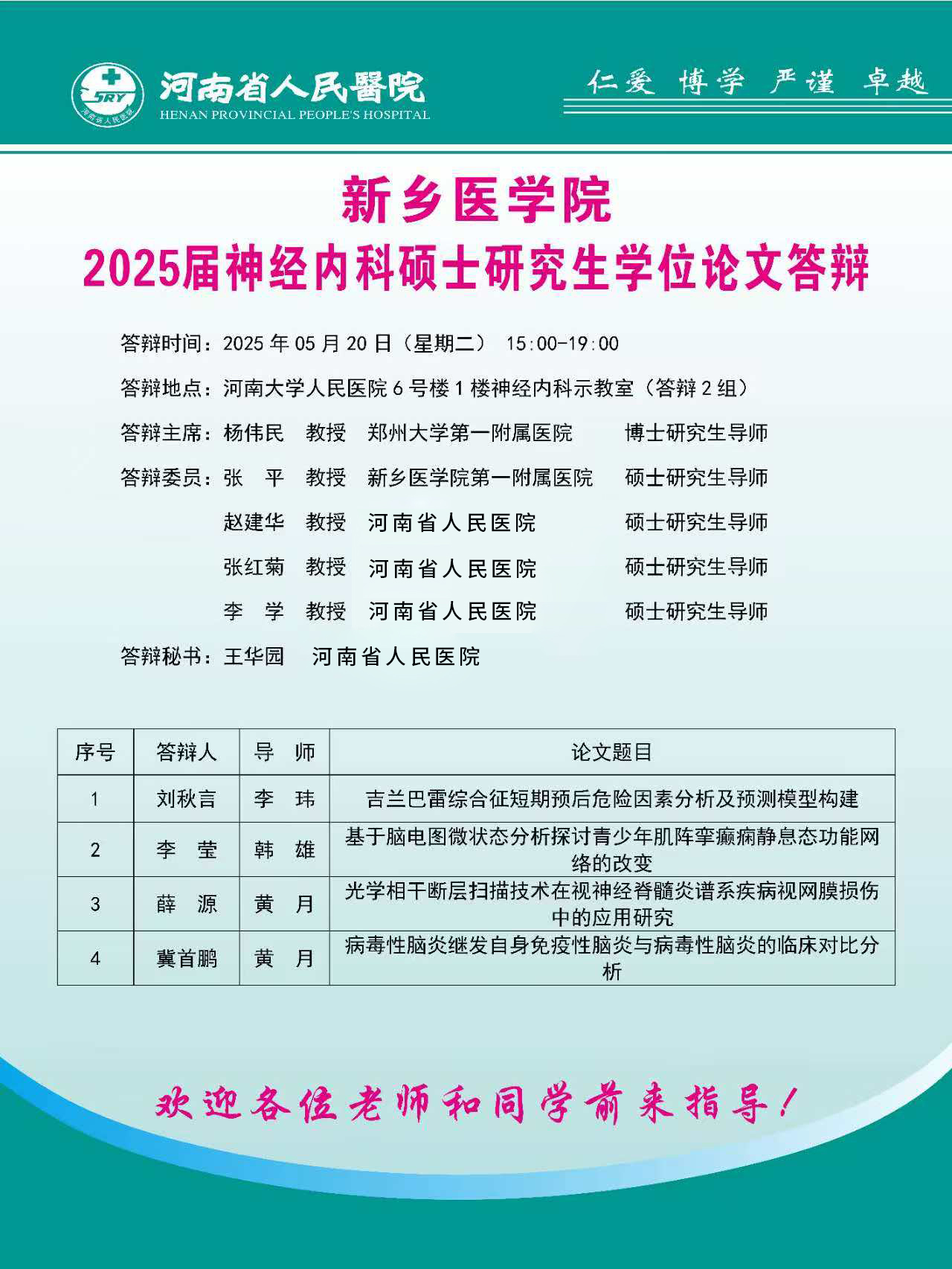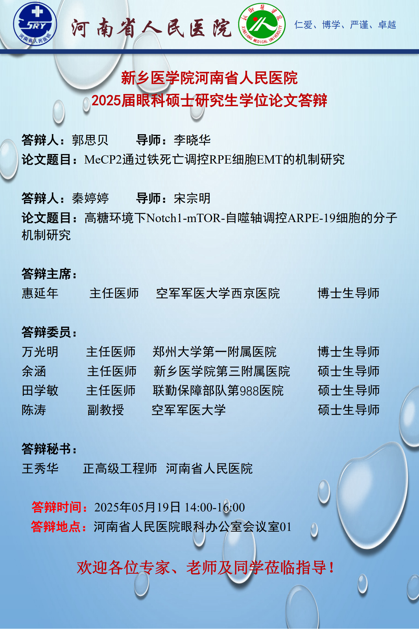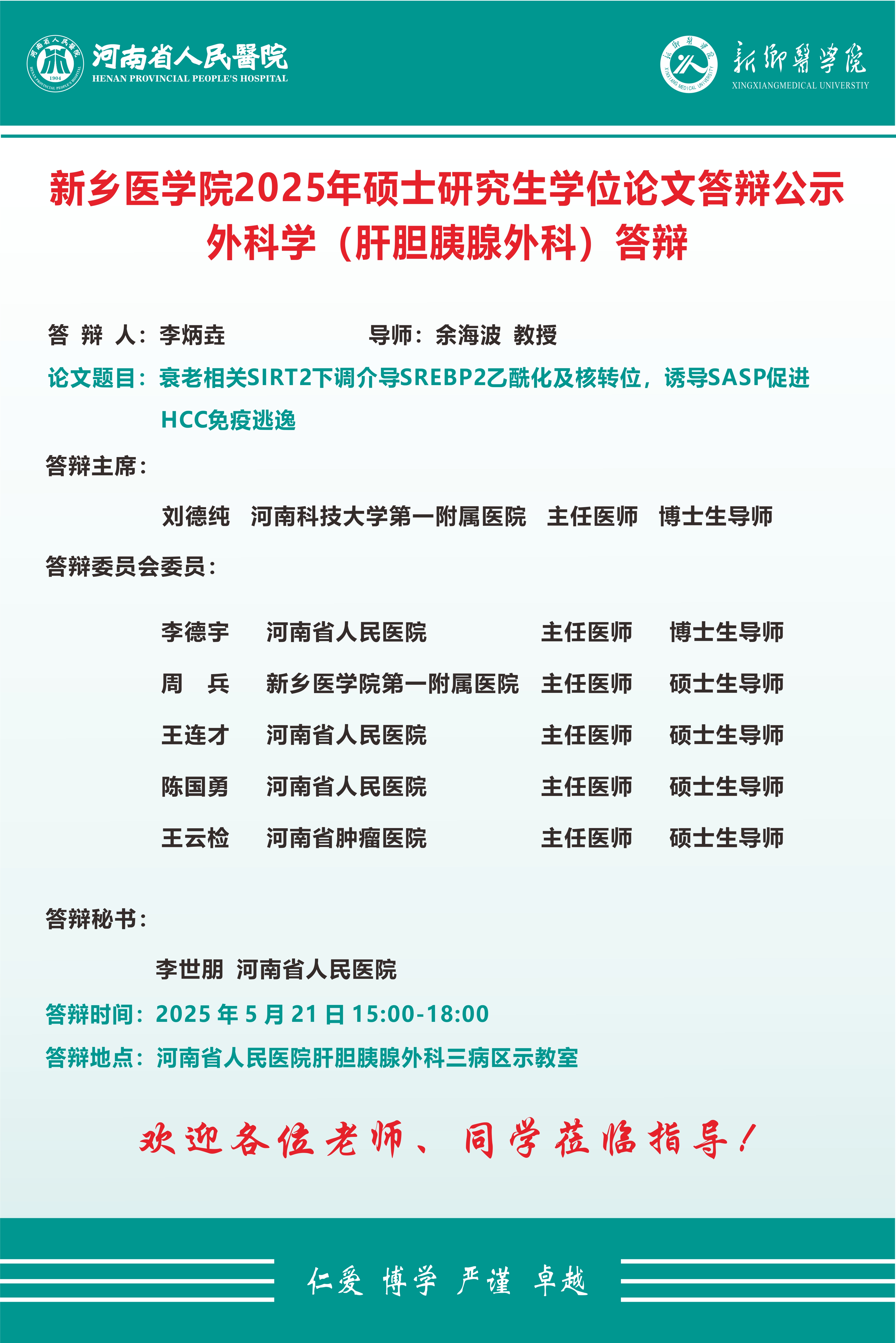 2025上半年华亿在线手机版(大中国区)河南省人民医院硕士学位论文答辩会
