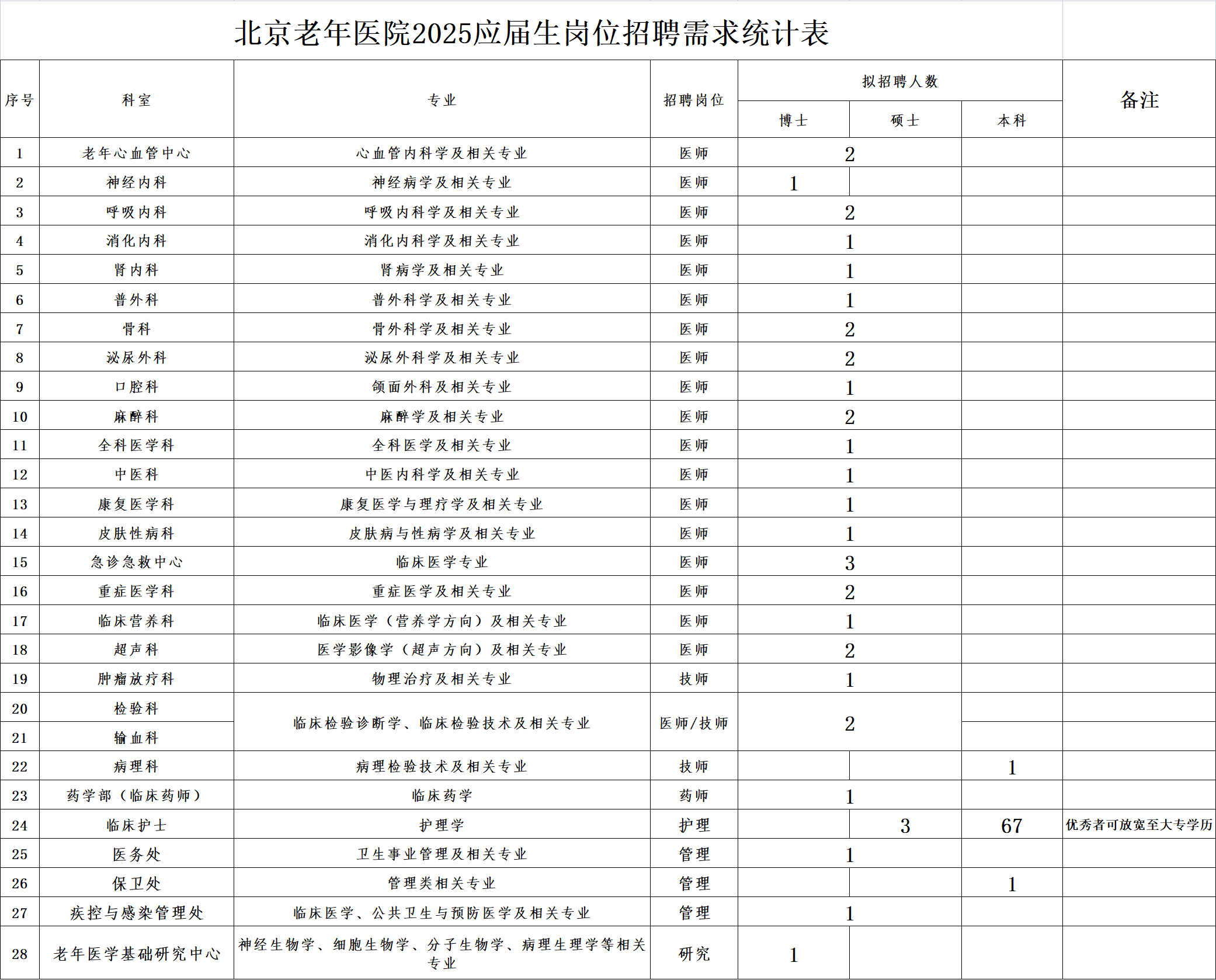 2.北京老年医院2025年度应届生招聘需求统计表.xlsx