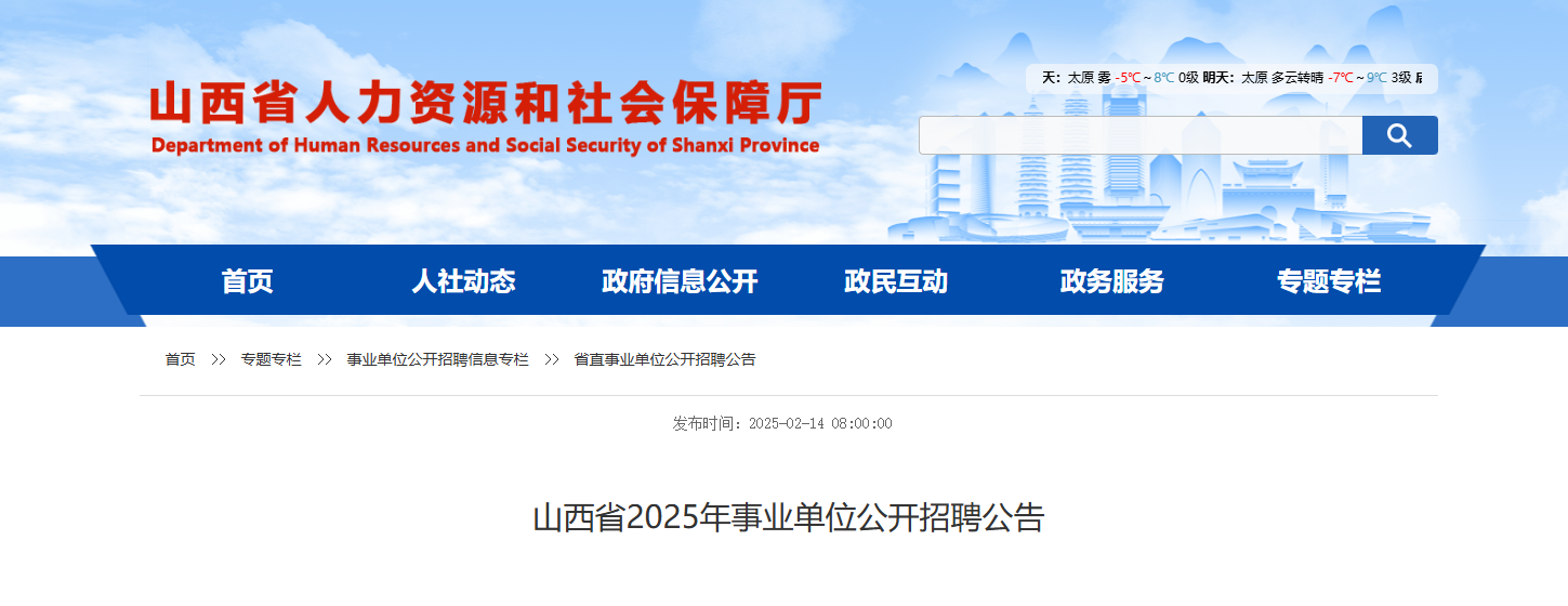 按照《事业单位人事管理条例》和国家及我省事业单位公开招聘有关政策规定和要求,省级事业单位人事综合管理部门统一组织实施2025年全省事业单位公开招聘工作。现将有关事项公告如下。