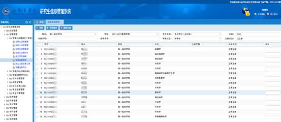 8月7日已完成全部283名2021级临床医学专业学位硕士研究生在研究生管理系统的线上报到和注册工作(图1)。自8月9日起依托超星尔雅、钉钉、学堂在线等平台开展网上课程学习。初期课程学习时间为5周,结束后进入住院医师规范化培训基地进行临床综合能力训练。到校报到等事宜将视总体疫情防控工作部署安排。