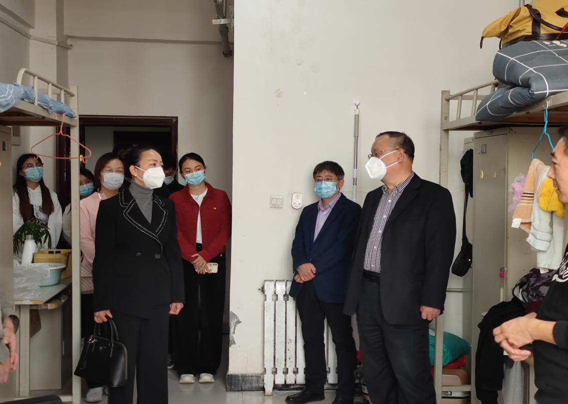 王辉走访宿舍时,首先向研究生表达学校的殷切关怀和深切慰问,介绍当前学校疫情防控的严峻形势,并与研究生进行了亲切的交流,仔细了解研究生的科研情况及特殊时期的身心状况,鼓励研究生调整心态,积极适应疫情防控期间的学习生活。