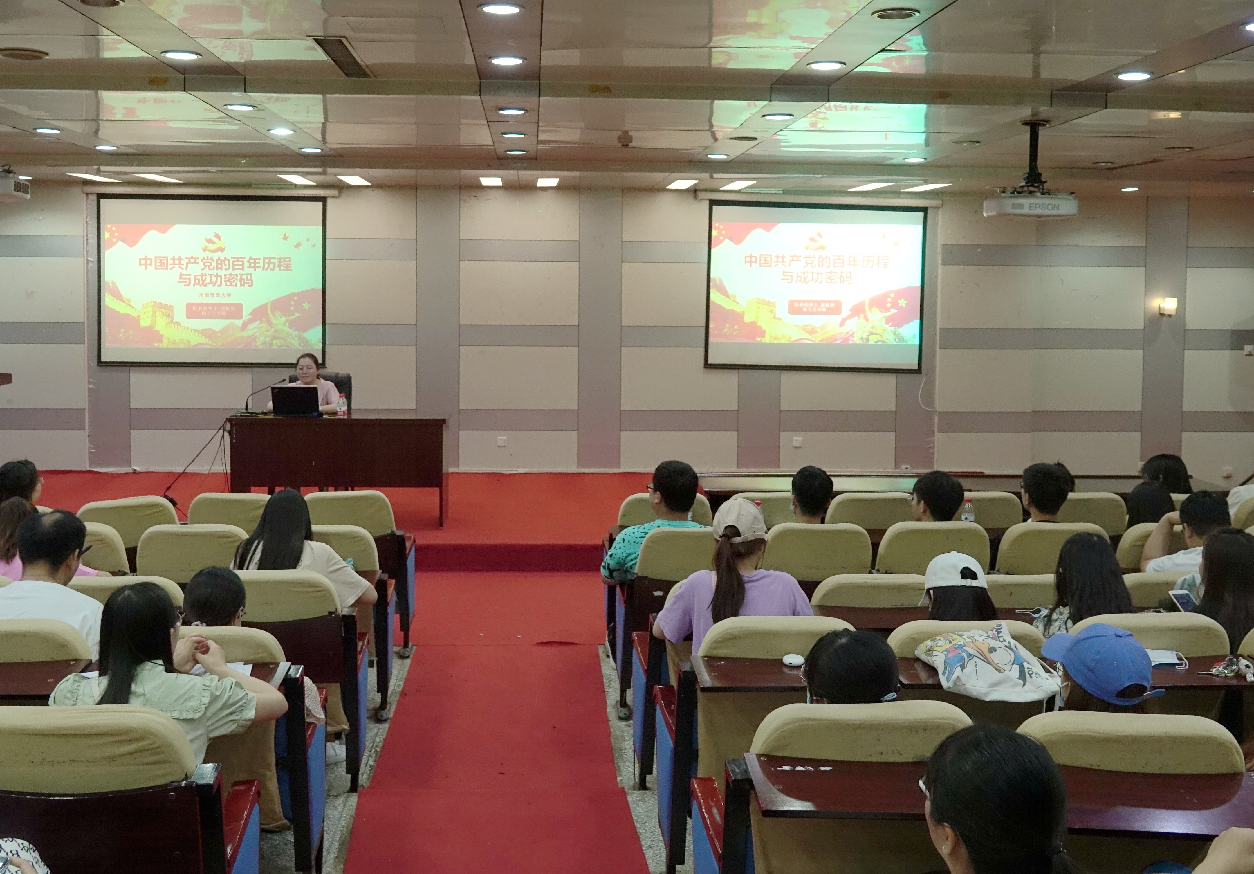 她说道:作为中共党员,我们应当铭记党的百年历程、并在困难挫折中汲取经验教训,以便进一步发扬革命精神、不断地从胜利中走向新的胜利。还强调中国共产党走过百年的成功密码是先进的党性、党风、党纪,中国共产党是以科学理论为指导的、勇于自我革命的党,坚定理想信念,全心全意为人民服务的党。不忘初心、牢记使命,不仅仅是一句口号,更是我辈共产党人需要始终践行的准则。最后,以《沁园春·长沙》中的“恰同学少年,风华正茂,书生意气,挥斥方遒”结束了本次精彩的演讲。讲座立意高远、守正创新,既富有理论性,又具有指导性,内容丰富、语言激昂,获得全体师生一致好评。