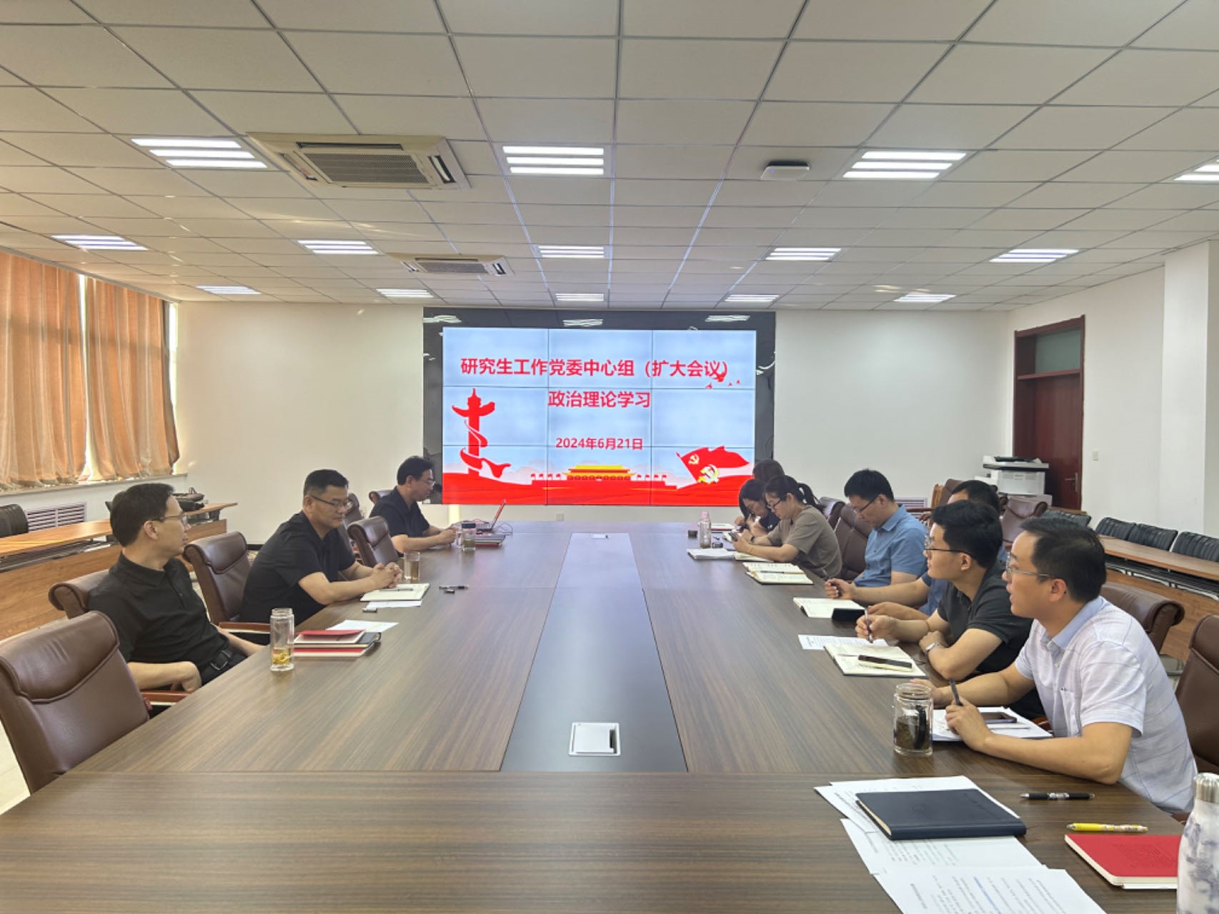 为进一步加强全校政治理论学习,推动党的创新理论走深走实,凝聚奋进力量,研究生工作党委于6月21日召开党委理论学习中心组(扩大)学习会议,党委班子成员和各科室党员同志参加了学习。