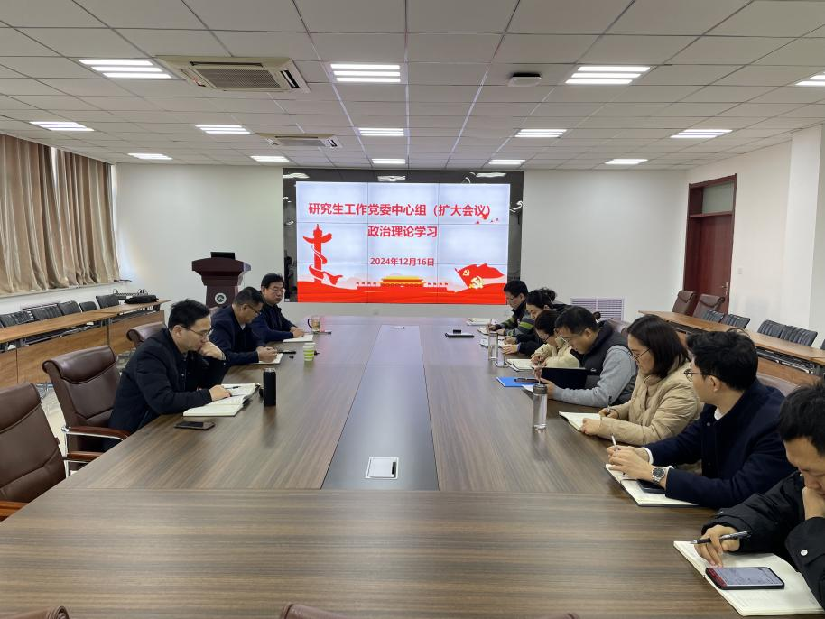 新时代新征程中,我校以政治理论学习为关键,推动党的创新理论深植人心并转化为行动,为学校发展注入强大动力,引领师生前行。12月16日,研究生工作党委召开12月份党委理论中心组(扩大)学习会议,党委班子成员和各科室党员同志参加了此次学习。