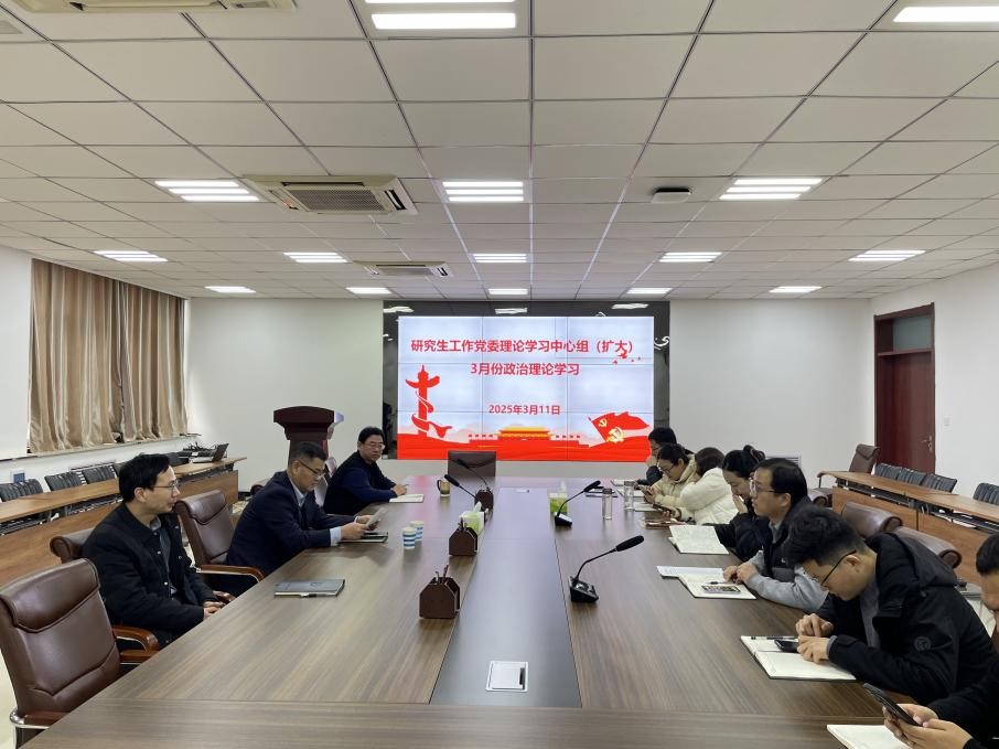在新时代新征程中,我校把政治理论学习当作关键任务,推动党的创新理论落地见效,为学校发展赋能,引领师生奋进。3月11日,研究生工作党委召开3月党委理论学习中心组(扩大)会议,党委班子成员与各科室党员同志参会。