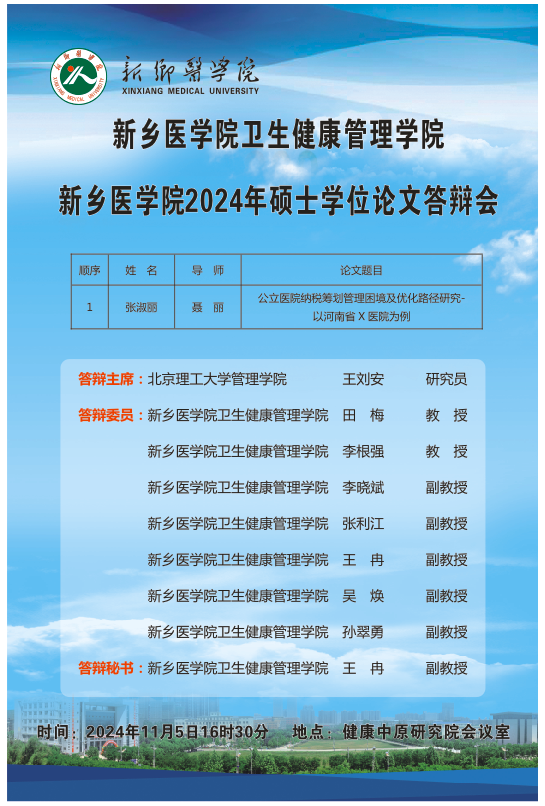 2024下半年华亿在线手机版(大中国区)卫生健康管理学院硕士学位论文答辩海报